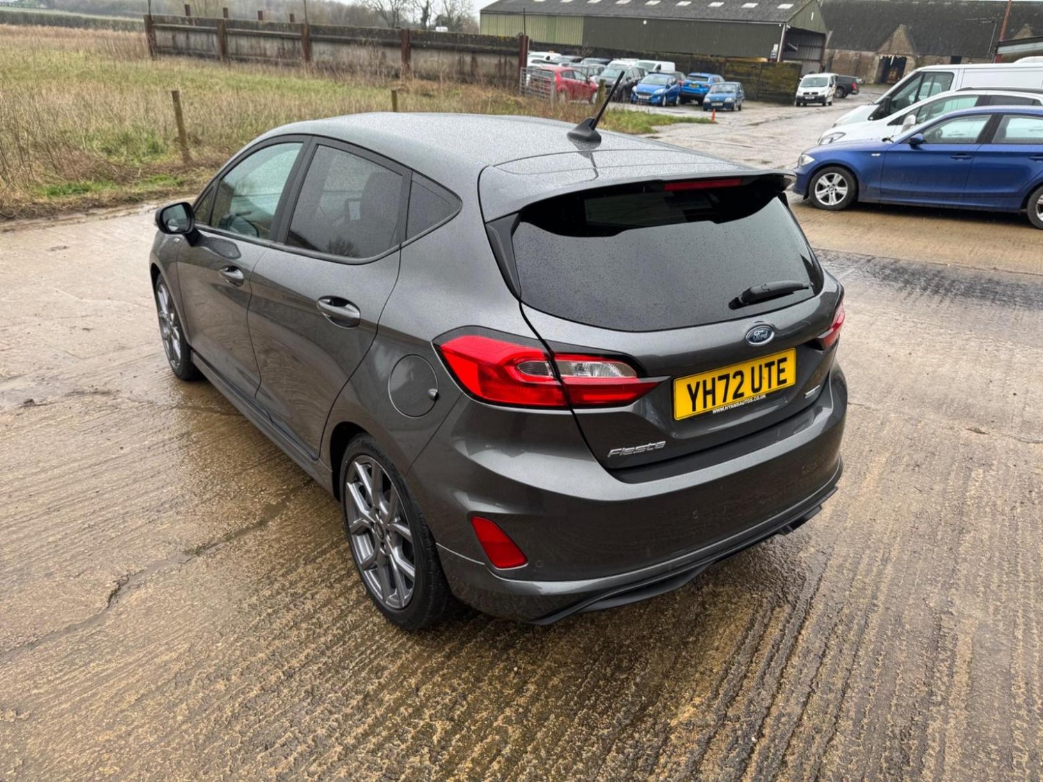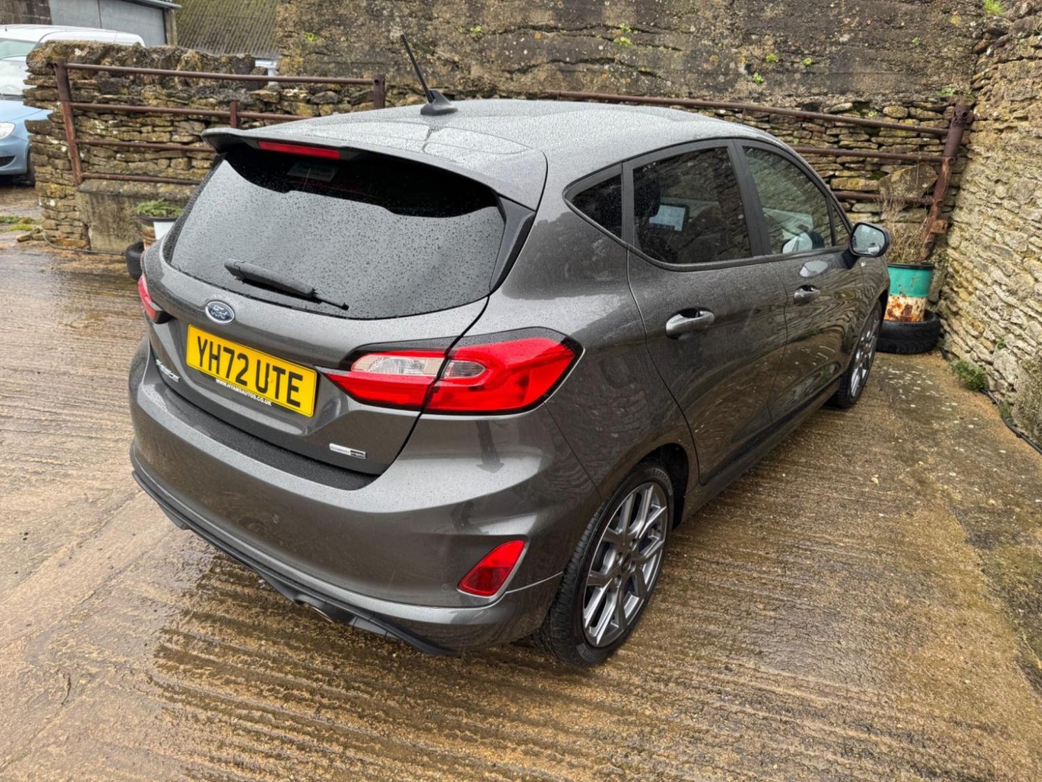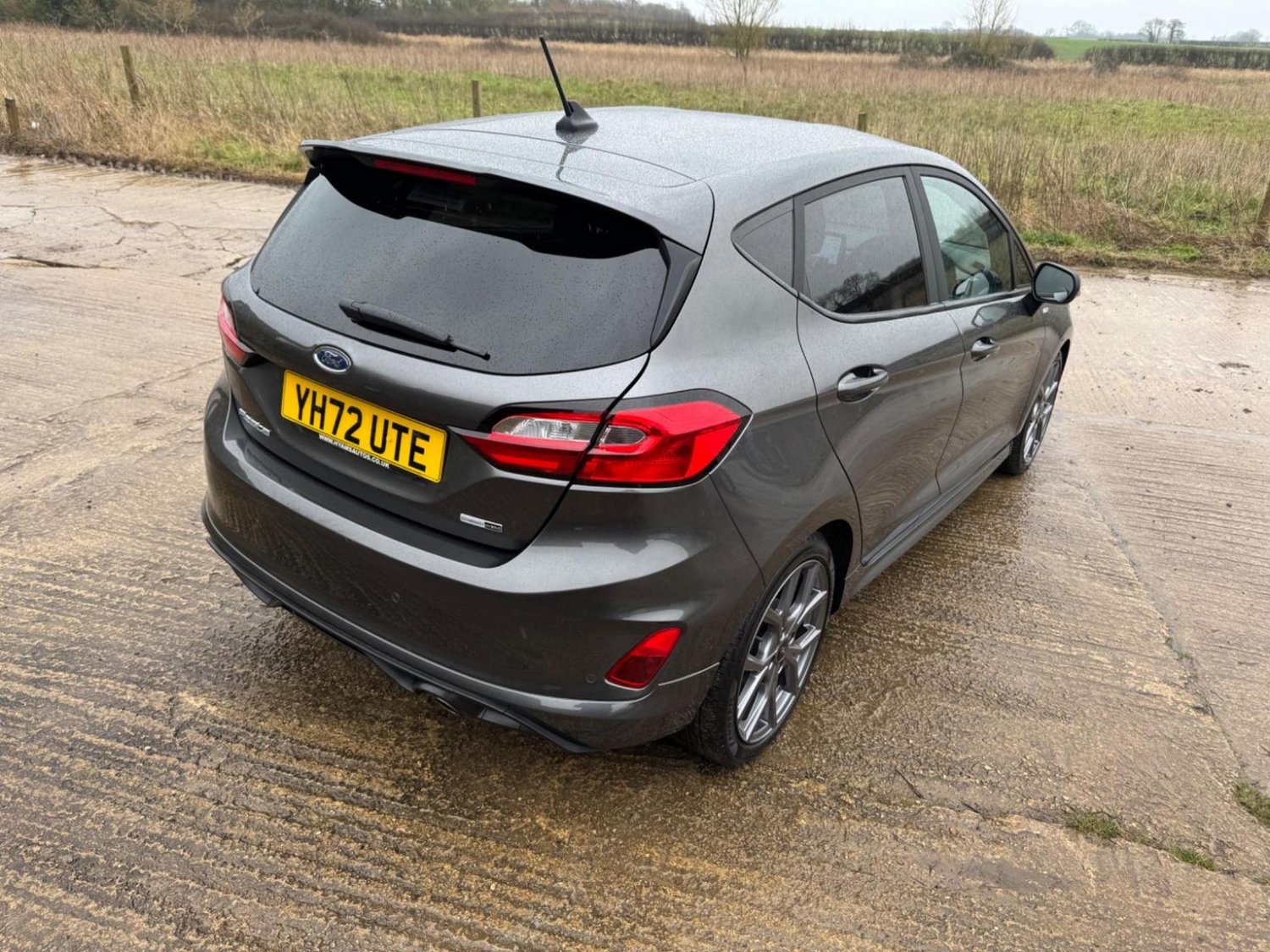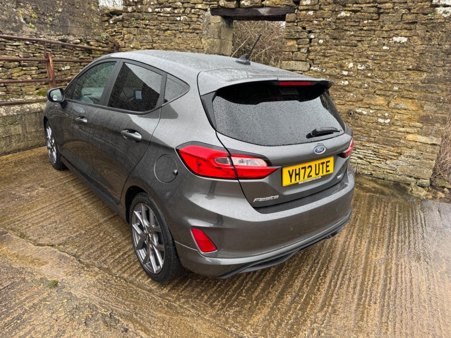 Presented in Stunning Ford Magnectic Grey , we have a December 2022 ,Ford Fiesta 1.0T EcoBoost MHEV ST-Line Edition Euro 6 (s/s) 5dr ,comes with a long Mot and the following services 28/06/2024 at 36564 miles at Euro Fit Wolverhampton , 30/01/2025 at 49296 miles at Hyams Autos Ltsd ,fited with a three cylinder 125 BHP Engine ,There’s a lot more mid-range muscle thanks in equal measure to the turbocharged and the mild-hybrid system. It pulls well from 30mph in third gear right up to the national speed limit.1.0-litre engines came with a six-speed manual gearbox as standard, as well as Sport or Eco drive modes to adjust the throttle response. The gearbox has a snappy shift action, which encourages you to row through the ‘box to get the best from the engine. ST-Line versions are even more encouraging to drive with a shorter, stubby gear lever.Choose a Fiesta ST-Line and you got a different experience. The biggest changes were more responsive steering and a 10mm ride height drop that kept body roll in check. Despite that, and its larger 17-inch alloy wheels, the ride remained supple, avoiding the harshness some manufacturers consider ‘sporty.’The Fiesta’s boot isn’t a bad size. It measures 292 litres with the rear seats in place and 1,093 litres with the bench folded,As a small car, the Fiesta was designed to be manoeuvrable and easy to park in towns and cities. It’s around 4,040mm long (varying with spec), 1,941mm wide with the mirrors, and 1,484mm high.The Ford Fiesta was crash-tested by the safety experts at Euro NCAP in 2017 and scored a solid five-star rating, with impressive adult and child occupant scores. However, bear in mind that the car was tested under an old set of regulations