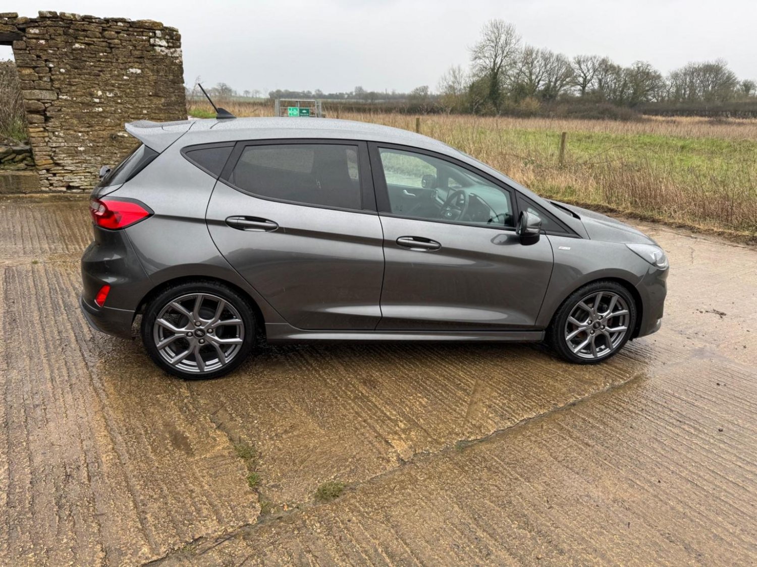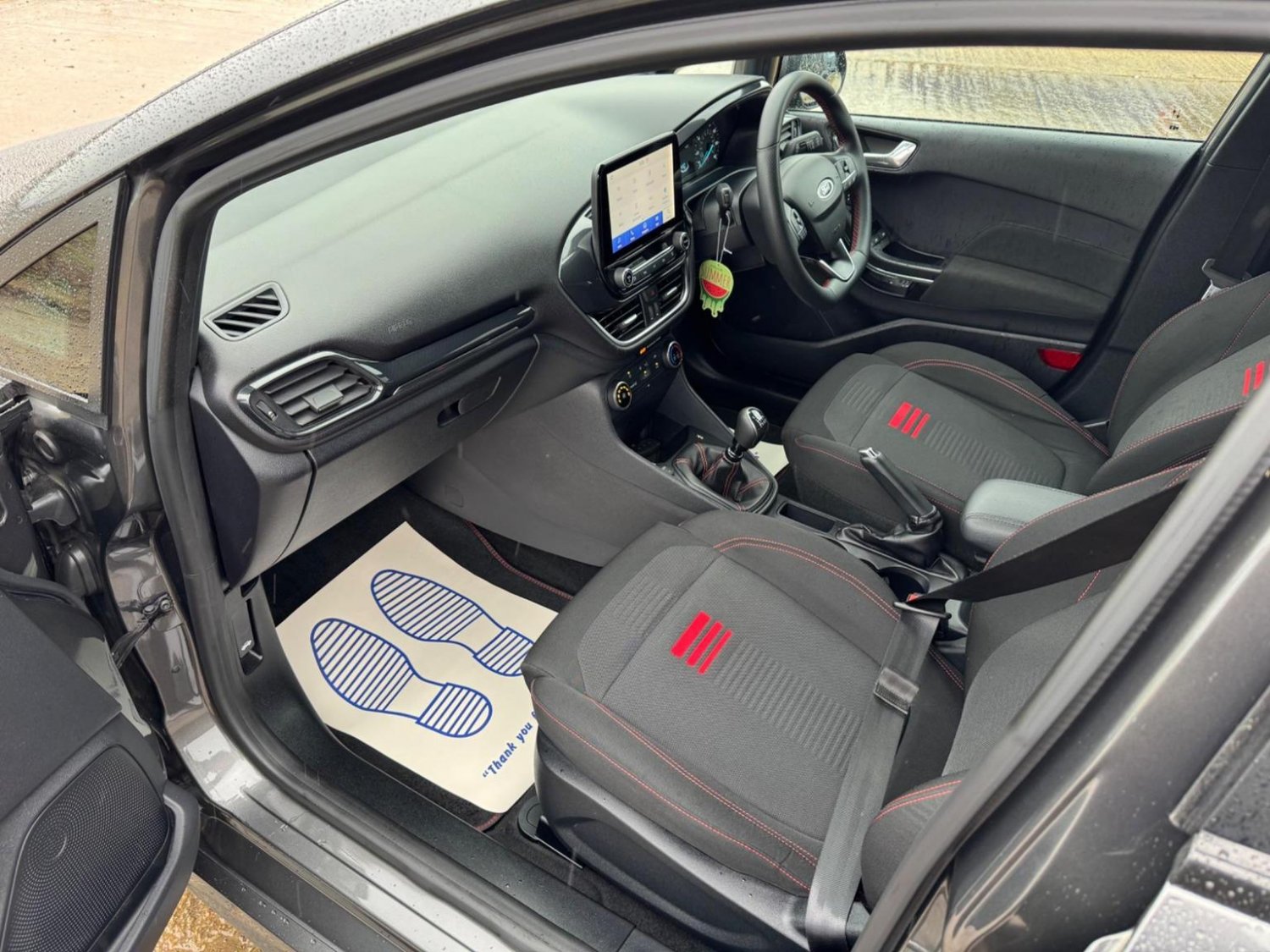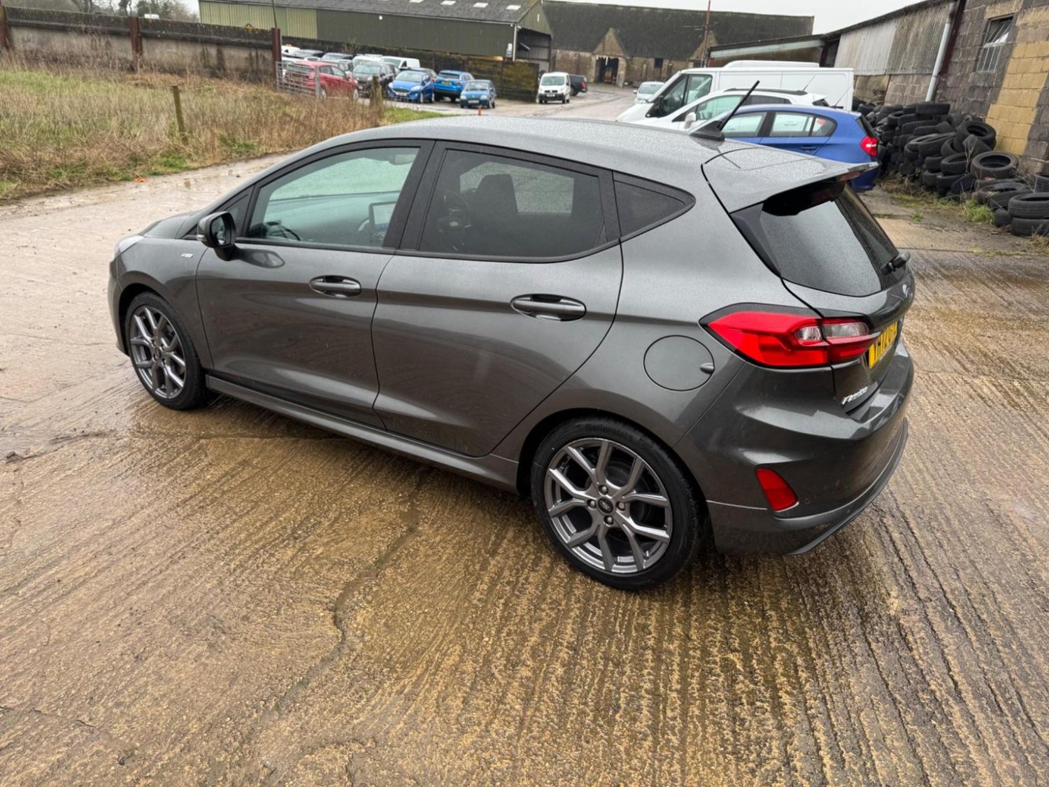 Presented in Stunning Ford Magnectic Grey , we have a December 2022 ,Ford Fiesta 1.0T EcoBoost MHEV ST-Line Edition Euro 6 (s/s) 5dr ,comes with a long Mot and the following services 28/06/2024 at 36564 miles at Euro Fit Wolverhampton , 30/01/2025 at 49296 miles at Hyams Autos Ltsd ,fited with a three cylinder 125 BHP Engine ,There’s a lot more mid-range muscle thanks in equal measure to the turbocharged and the mild-hybrid system. It pulls well from 30mph in third gear right up to the national speed limit.1.0-litre engines came with a six-speed manual gearbox as standard, as well as Sport or Eco drive modes to adjust the throttle response. The gearbox has a snappy shift action, which encourages you to row through the ‘box to get the best from the engine. ST-Line versions are even more encouraging to drive with a shorter, stubby gear lever.Choose a Fiesta ST-Line and you got a different experience. The biggest changes were more responsive steering and a 10mm ride height drop that kept body roll in check. Despite that, and its larger 17-inch alloy wheels, the ride remained supple, avoiding the harshness some manufacturers consider ‘sporty.’The Fiesta’s boot isn’t a bad size. It measures 292 litres with the rear seats in place and 1,093 litres with the bench folded,As a small car, the Fiesta was designed to be manoeuvrable and easy to park in towns and cities. It’s around 4,040mm long (varying with spec), 1,941mm wide with the mirrors, and 1,484mm high.The Ford Fiesta was crash-tested by the safety experts at Euro NCAP in 2017 and scored a solid five-star rating, with impressive adult and child occupant scores. However, bear in mind that the car was tested under an old set of regulations