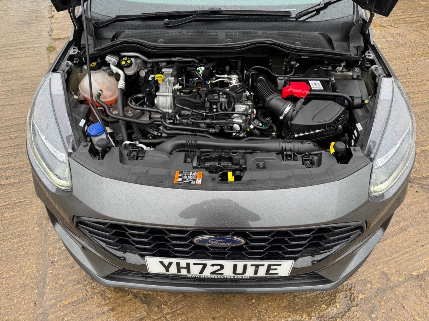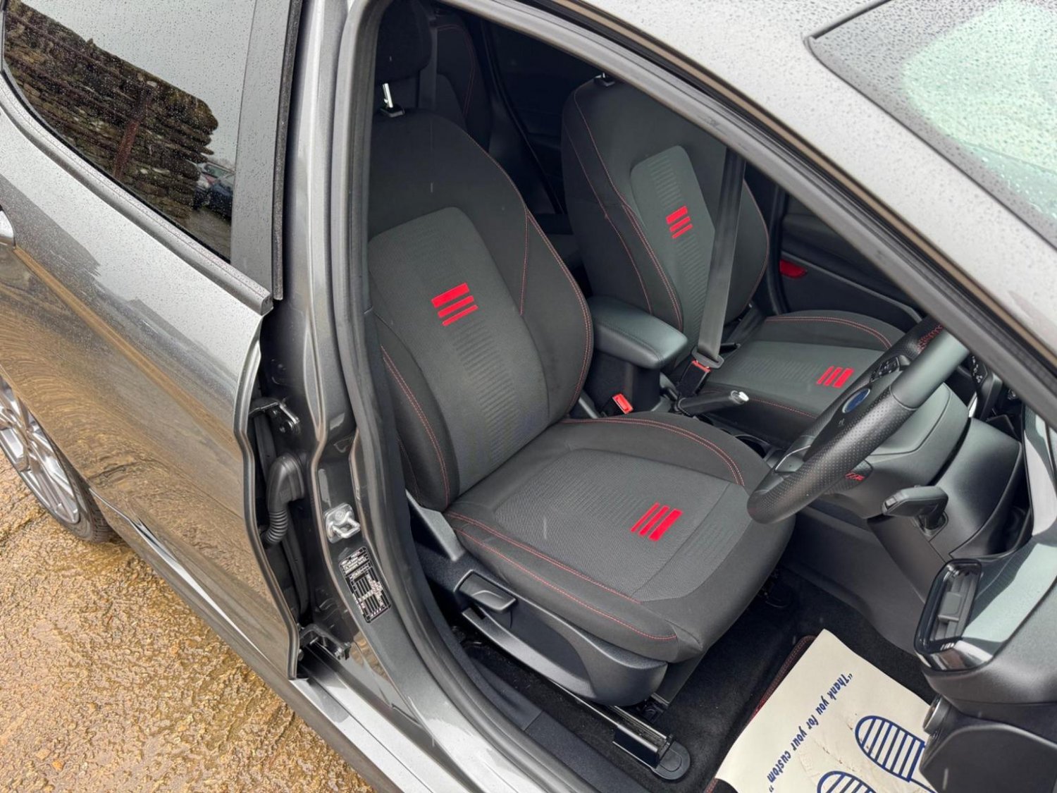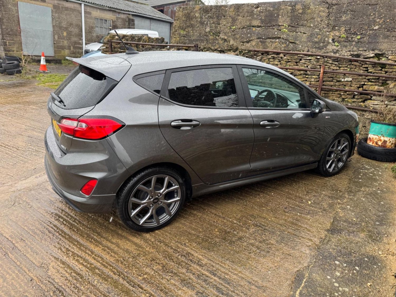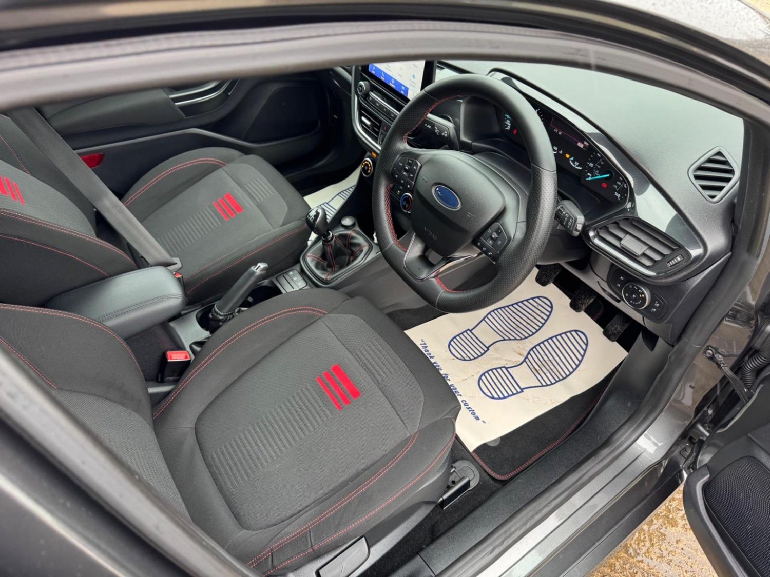 Presented in Stunning Ford Magnectic Grey , we have a December 2022 ,Ford Fiesta 1.0T EcoBoost MHEV ST-Line Edition Euro 6 (s/s) 5dr ,comes with a long Mot and the following services 28/06/2024 at 36564 miles at Euro Fit Wolverhampton , 30/01/2025 at 49296 miles at Hyams Autos Ltsd ,fited with a three cylinder 125 BHP Engine ,There’s a lot more mid-range muscle thanks in equal measure to the turbocharged and the mild-hybrid system. It pulls well from 30mph in third gear right up to the national speed limit.1.0-litre engines came with a six-speed manual gearbox as standard, as well as Sport or Eco drive modes to adjust the throttle response. The gearbox has a snappy shift action, which encourages you to row through the ‘box to get the best from the engine. ST-Line versions are even more encouraging to drive with a shorter, stubby gear lever.Choose a Fiesta ST-Line and you got a different experience. The biggest changes were more responsive steering and a 10mm ride height drop that kept body roll in check. Despite that, and its larger 17-inch alloy wheels, the ride remained supple, avoiding the harshness some manufacturers consider ‘sporty.’The Fiesta’s boot isn’t a bad size. It measures 292 litres with the rear seats in place and 1,093 litres with the bench folded,As a small car, the Fiesta was designed to be manoeuvrable and easy to park in towns and cities. It’s around 4,040mm long (varying with spec), 1,941mm wide with the mirrors, and 1,484mm high.The Ford Fiesta was crash-tested by the safety experts at Euro NCAP in 2017 and scored a solid five-star rating, with impressive adult and child occupant scores. However, bear in mind that the car was tested under an old set of regulations