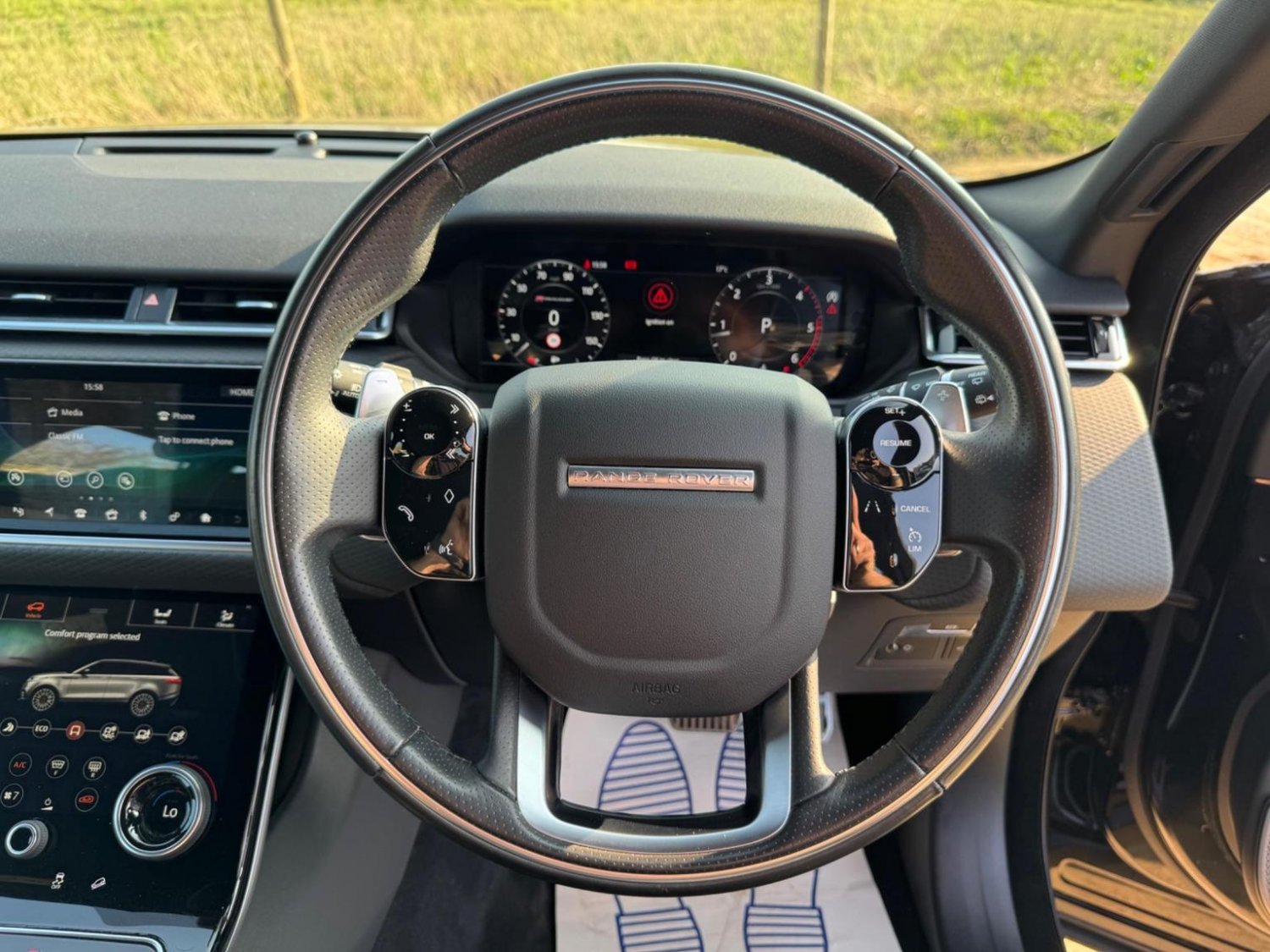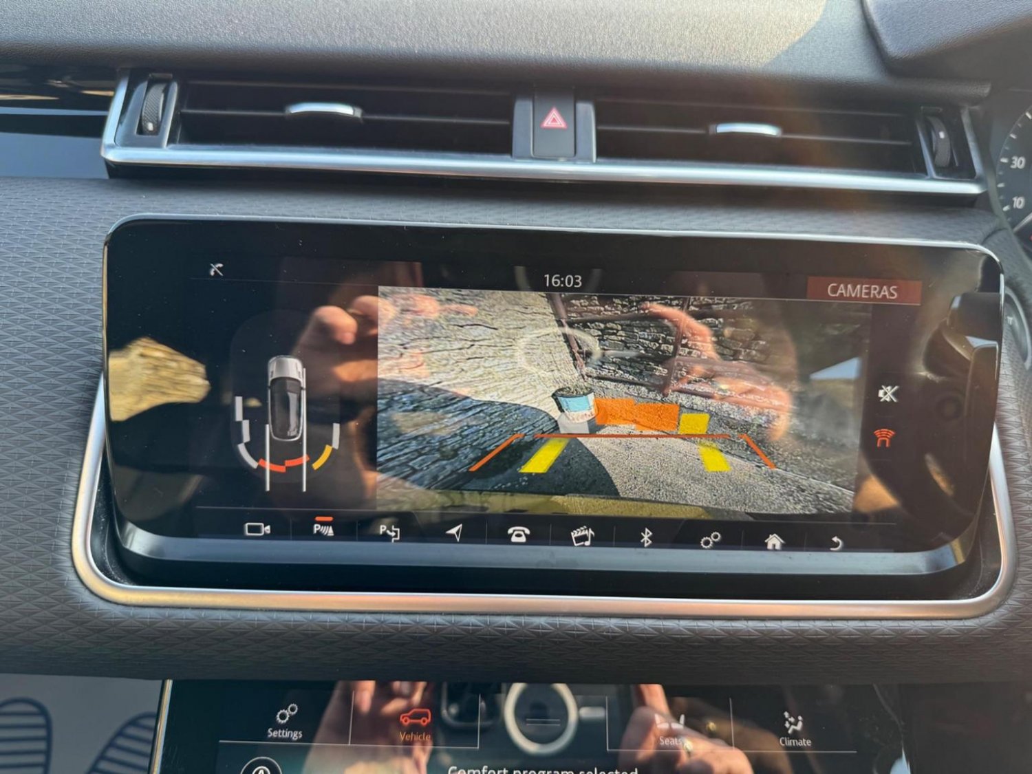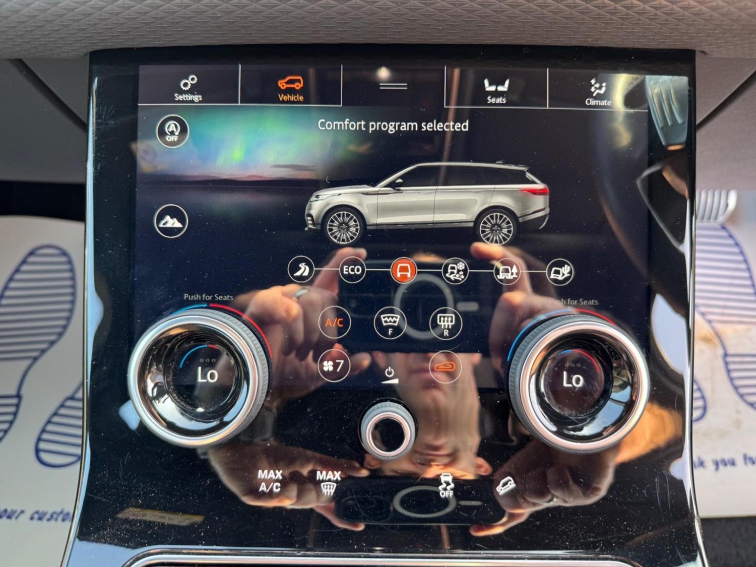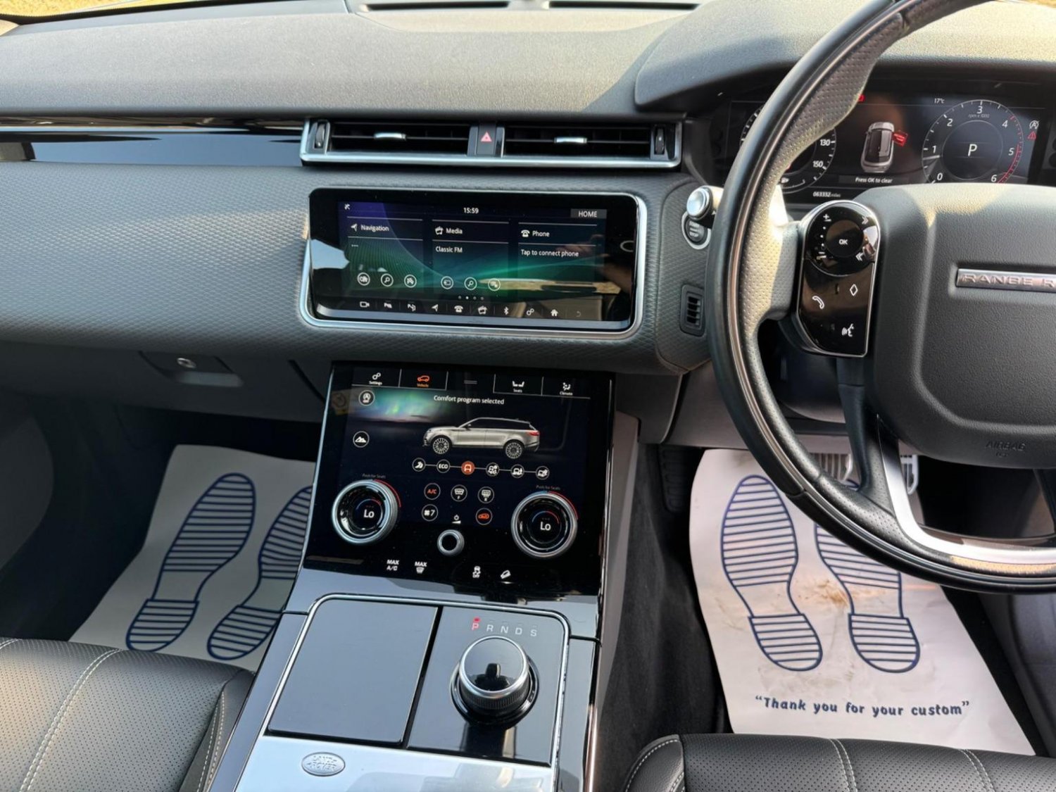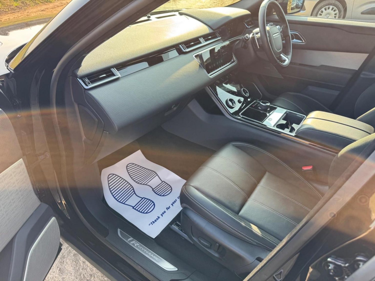 Presented in Stunning Landrover Santorini Black we have a March 2019 Land Rover Range Rover Velar 2.0 D180 R-Dynamic SE Auto 4WD Euro 6 (s/s) 5dr,fitted with a 1999 cc Diesel engine which produces 180 BHP and returns 47.9 MPG Combined Fuel Return , Land Rover use 2.0-liter turbocharged engine, available in both petrol and diesel variants, which is known as the "Ingenium" engine by Land Rover; offering different power outputs depending on the specific model, typically ranging from around 160bhp to 296bhp depending on the trim level. The Range Rover Velar's R-Dynamic pack adds extra visual sportiness to what is a classy and comfortable SUV. The R-Dynamic styling pack adds a dose of sportiness to the Range Rover Velar, with a few extras inside and out.Thanks to the AWD and IDD systems in the Range Rover Velar, . On slippery surfaces, the torque is balanced between the front and rear wheel to improve traction.The Velar was conceived to plug the gap between the Range Rover Evoque and the Range Rover Sport, and was designed to combine a more driver-focused attitude with a premium-market feel you might expect from a full-sized Range Rover. It also looks the part – it sits low and wide, but is underpinned by Land Rover’s undoubted expertise in 4x4 technology.As is the way with all Range Rovers these days, the Velar range is split into two varieties – standard Velars and the sportier R-Dynamic versions. ‘Normal’ Velars are available as they come, or with S, SE or HSE equipment packs. The R-Dynamic comes as it is, or in S form – and all have larger wheels and a more aggressive-looking front bumper.They’re all well-equipped, with even the entry-level Velar featuring LED headlights, heated front seats. leather steering wheel, twin-screen Pivi Pro infotainment system, keyless entry and 3D Surround Camera. The S models adds in-built navigation and a Meridian premium audio system, making this the one to go for.
