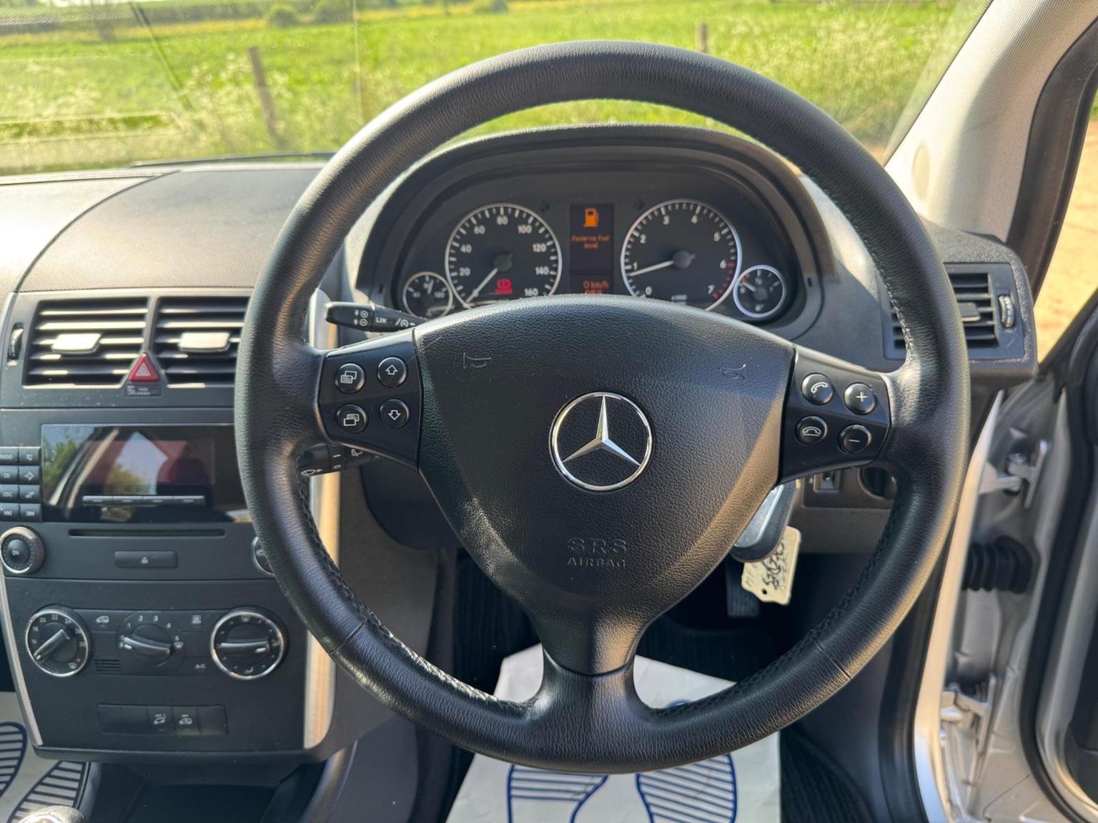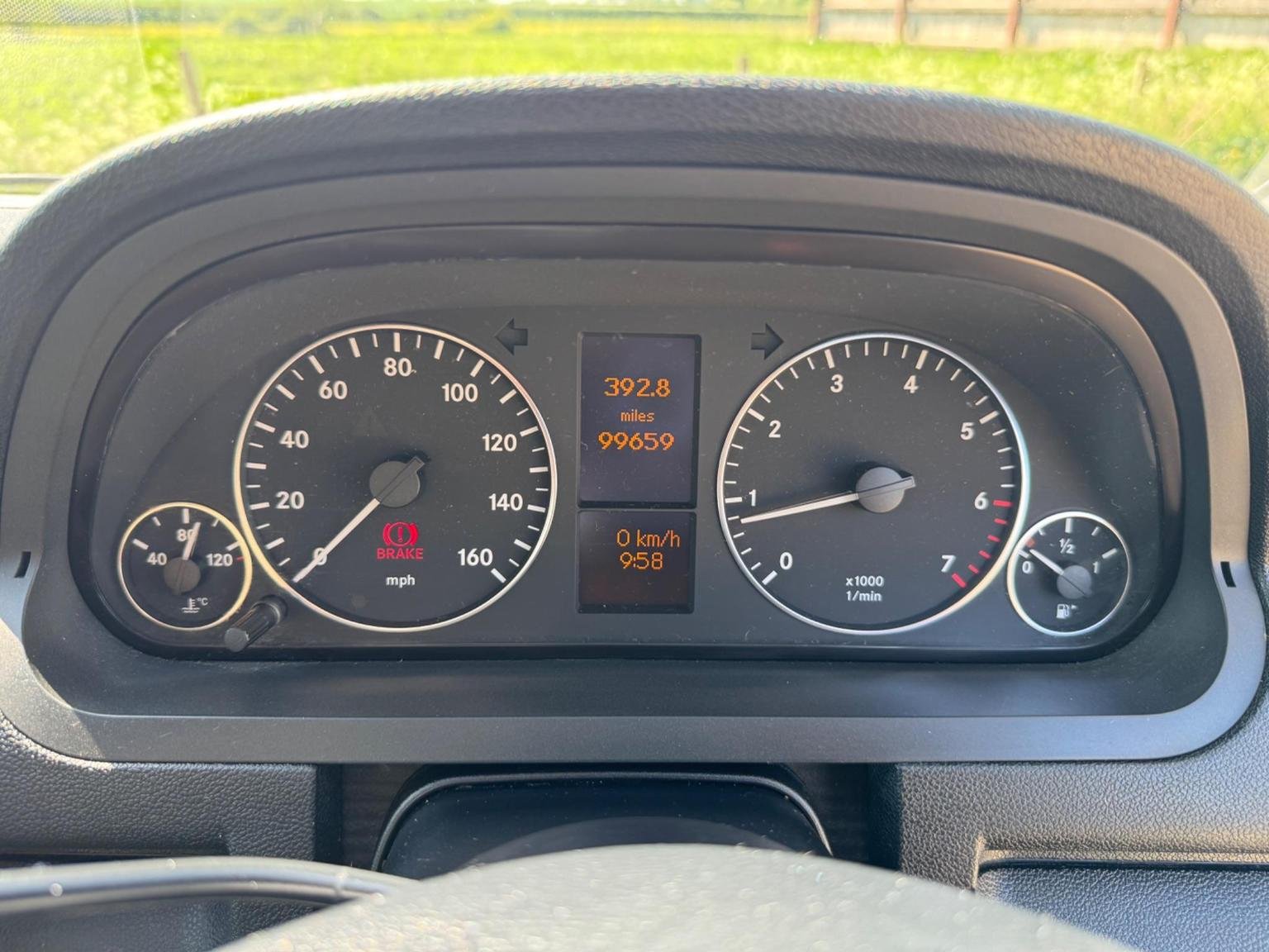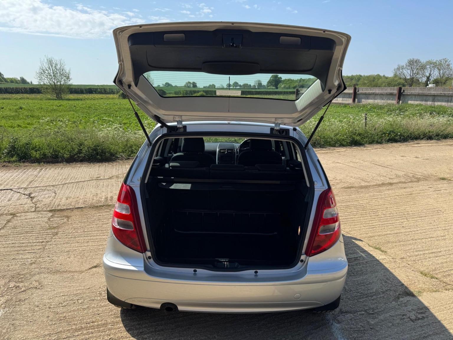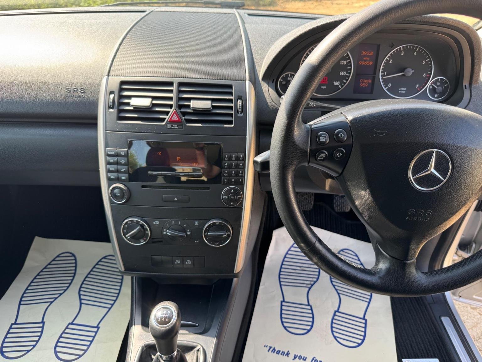 External temperature gauge Front seatbelt reminder + rear seatbelt status indicator, Lights on warning Service indicator (ASSYST), Speed sensitive parameter assisted steering Speedtronic cruise control, Black door handles Black electric adjustable heated door mirrors, Black radiator grille Body colour bumpers Body colour front and rear rubbing strips, Electric front windows/one touch facility Front fog lights Heated washer nozzles, High level third brake light Laminated windscreen Metallic paint Rear screen wiper - intermittent, Roof mounted aerial Side indicators integrated into door mirrors Tinted glass, 1/3 to 2/3 split folding rear seats 4 way height/angle adjustable rear headrests Air conditioned glovebox, Auto Mercedes-Benz child seat recognition sensor Black velour floor mats Centre console storage Controllable light in rear compartment, Cupholders in centre console Door sill panels with aluminium inlay Drinks holders in front and rear door pockets, Height adjustable load compartment floor with stowage facility Height adjustable steering wheel Isofix child seat preparation, Leather steering wheel/gearshift/handbrake lever Luggage compartment cover Luggage compartment lighting, Luggage compartment load restraining hooks Multi function steering wheel + trip computer Overhead control panel with Driver/passenger reading light, Removable rear seat cushions Roveto cloth upholstery Packs Exterior sight and light pack - A Class, 3 rear 3 point seatbelts ABS with Brake Assist Active front headrests Brake pad warning light, Driver/Front Passenger airbags ESP with ASR Front side airbags(head+thorax) Height adjustable front seatbelts, Seatbelt pretensioners on front/outer rear seats STEER Control - steering assistance system Warning triangle and first aid kit, Alarm system/interior protection/immobiliser Remote central locking Trim Aluminium interior trim Wheels 16" 7 spoke alloy wheels