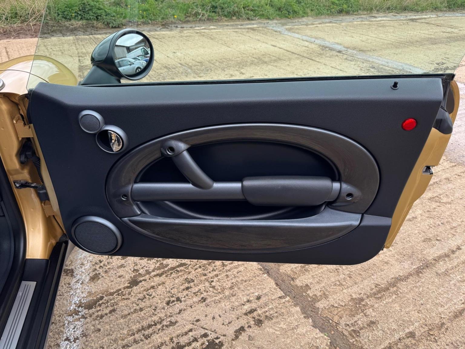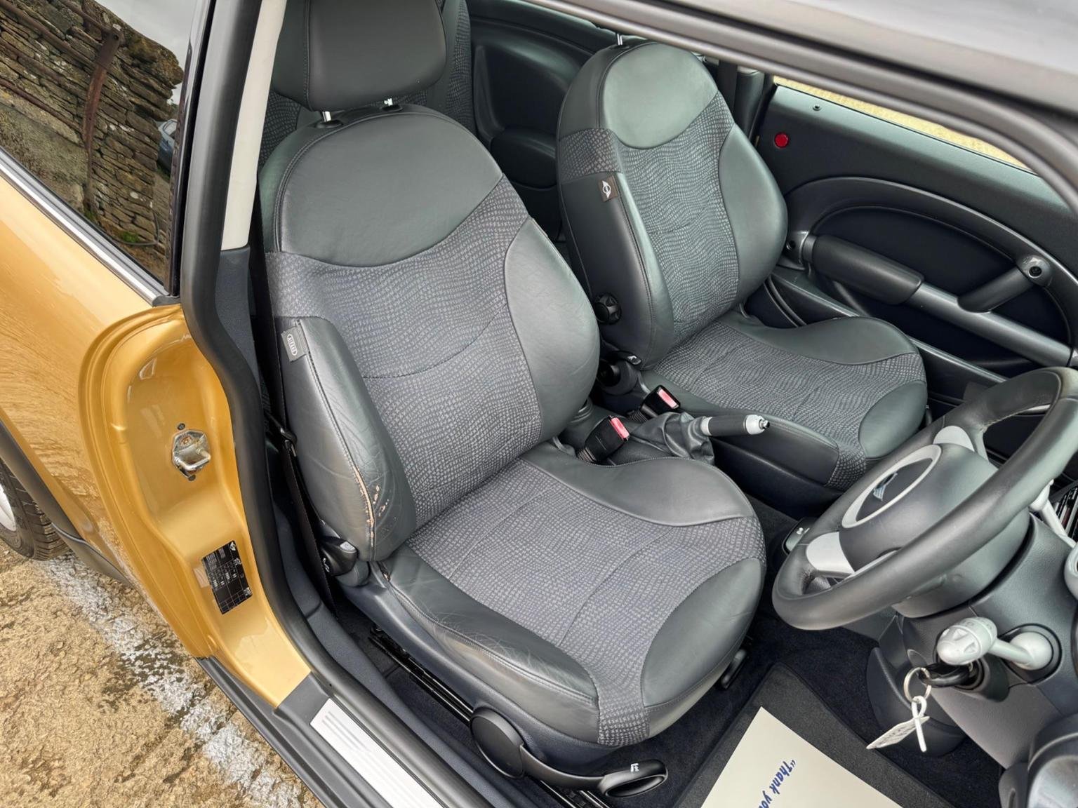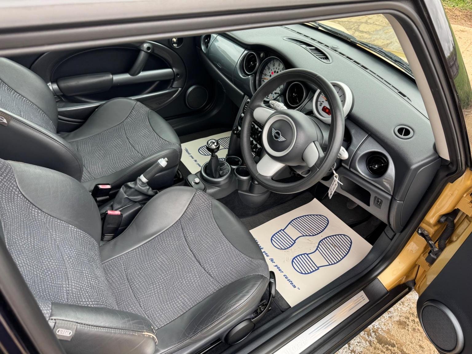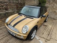 The MINI Hatch Cooper accelerates from 0-62mph in 9.2 seconds. This quick acceleration means it can be faster than similar vehicles of the same type.Having been brought from Wood Bournemouth Mini , with these stunning upgrades , Solid Gold Metallic Paint ,Cloth /Lea Kaleido Black Trim ,Sports Suspension Plus ,Roof & Mirror Caps In Black ,Electric Panoramic Glass Roof ,Darkened Glass ,Single slot CD Player ,Radio Boost ,Chilli Pack , comes with a long Mot and the following services 22/04/2004 PDI at Mini Bournemouth, 02/05/2006 at 6592 miles at Mini Bournemouth ,28/04/2009 at 15248 miles at Mini Bournemouth ,09/12/2011 at 22706 miles at Halfords Autocentre Dorset ,11/04/2014 at 26937 miles at Graham Hill ,13/05/2015 at 28659 miles at Graham Hill ,19/04/2016 at 30063 miles at GrahamHill ,19/04/2017 at 31808 miles at Graham Hill , 20/04/2018 at 33359 miles at Graham Hill ,04/09/2020 at 37006 miles at Graham hill, 23/08/2021 at 38599 miles at Graham Hill ,30/08/2022 at 40155 miles at Graham hILL ,22/08/2023 at 41961 miles at Grajham Hill .