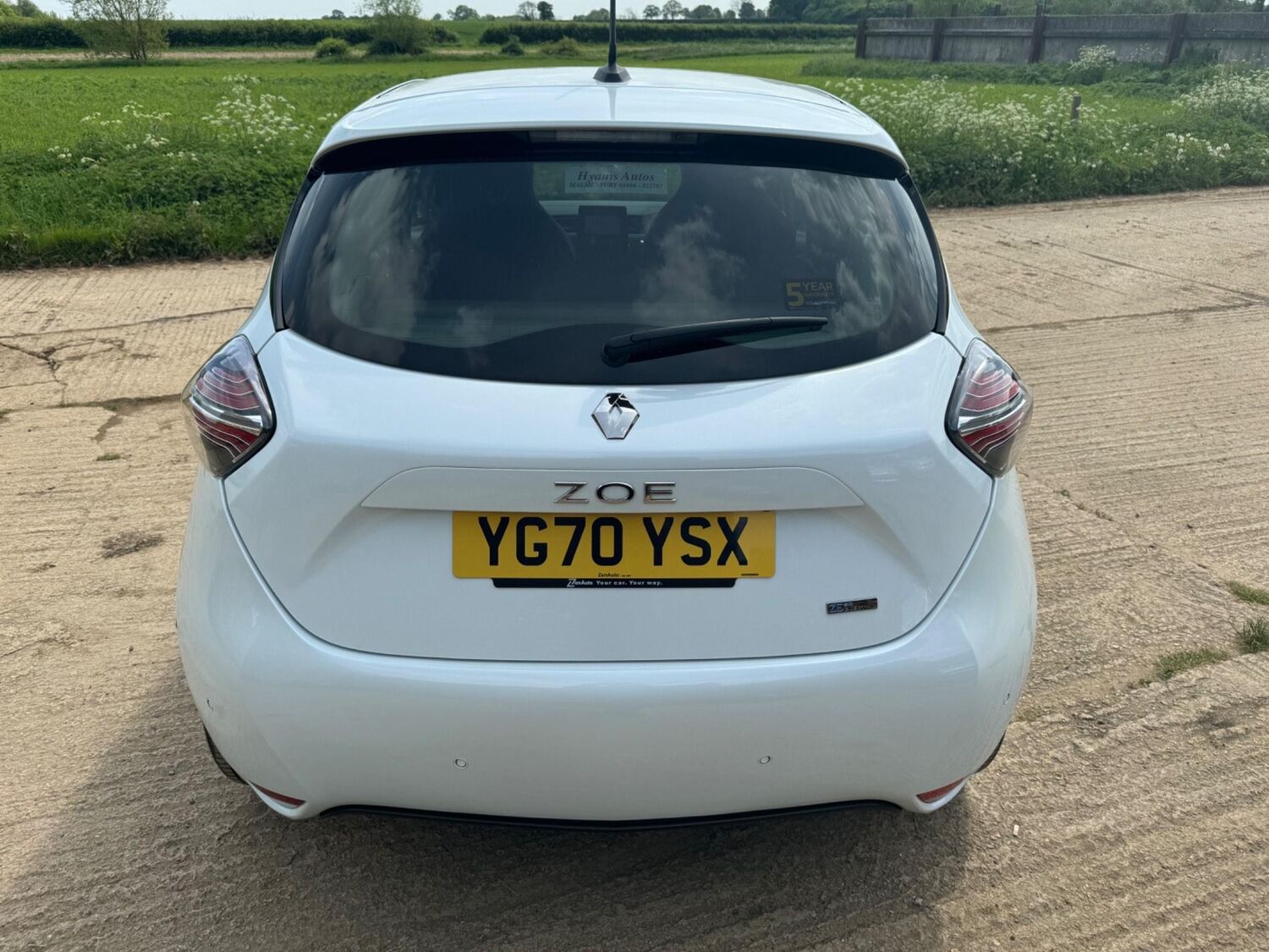 16in Alloy Wheels - Diamond Cut with Michelin EV Energy Tyres, 50kW DC Rapid Charging, AEBS - Advanced Emergency Braking System, ASR - Traction Control, Auto Dimming Rear View Mirror, Automatic Headlights, Blind Spot Warning, CSV - Understeer Control, Chameleon Charger, Charging Cable - Type 2, Climate Control - Air Conditioning, Cruise Control with Speed Limiter, Door Handles - Body Coloured - Front, Door Mirrors - Electrically Operated - Heated - Folding, E-Shifter with B-Mode, EASY LINK 9.3in Display with Nav, ESC - Electronic Stability Control, Eco Mode Button, Fixed 3 Point Seat Belt on Central Rear Seat, Fixed 3 Point Seat Belts with Load Limiters on Outer Rear Seats, Front Fog Lights, Front Z.E. Charging Socket, Full 10in TFT with ZE Identity, Full LED Headlights with C-Shape DRL, Headlights - Automatic High-Low Beam, Headrests - Rear x3, Height Adjustable 3-Point Front Seatbelts with Pretensioners, Inductive Smart Phone Charging, LDW - Lane Departure Warning, LKA - Lane Keep Assist, PET Soft Touch Steering Wheel, Parking Brake - Automatic, RAID - Renault Anti Intruder Device - Automatic Door Locking, Range Indicator, Range Optimizer, Renault Keycard with Handsfree Entry, Seatbelt Reminder Warning, Seats - Split Folding Rear, Smart Phone Integration, Speakers x6, Sun Visors with Mirror and Light, TSR - Traffic Sign Recognition, Technology Pack, Tinted Rear Windows, Two Rear USB Plugs, Tyre Pressure Monitoring System, Z.E. Connected Services - 3 Year Subscription, Z.E. Voice, 10" TFT Driver information display Blind spot warning Charging cable (Type 2) Cruise control + speed limiter, Cruise control switches on steering wheel Driving style indicator Eco mode Econometer, Electric power steering Lane departure warning system (LDW) Lane keeping assistant (LKA) Over speed prevention Range indicator, Range optimizer Slow speed pedestrian warning Smartphone integration compatible with Apple CarPlay and Android Auto Traffic sign recognition (TSR), Battery charge indicator Chameleon charger AC 2-22kW, 2 USB sockets in rear Steering wheel mounted controls, Auto dimming rear view mirror Automatic hazard lights activation under emergency braking Automatic headlights + automatic windscreen wipers Automatic, Automatic rain sensing wipers Body colour bumpers Body colour door mirrors Body colour front door handles, Chrome grille Chrome surround on front fog lamps Driver one touch and passenger electric windows Electric rear windows, Electrically operated heated and folding mirrors Front fog lights Full LED headlamps with C-shape LED daytime running lights Heated rear windscreen, Hot stamped grille Tinted rear windows Interior Features 12V socket in lower dashboard 3 rear head restraints Automatic air conditioning, Driver/passenger sunvisors and vanity mirrors Drivers seat with longitudinal adjustment and recline Front charging socket Front door storage bins wit, Front head restraints Gear shift indicator Glovebox Height/reach adjust steering wheel, ISOFIX on front passenger and rear outer seats PET soft touch steering wheel Soft armrests in door panels Split folding rear seats, Stowage pocket in front passenger seat back Synthetic leather/fabric (recycled) upholstery Twin front cupholders, Technology pack - Zoe Passive Safety 3 point seatbelts on all rear seats Anti-lock braking system (ABS) Automatic parking brake, Child locks on rear doors Driver/Front Passenger airbags ESP + ASR traction control + CSV understeer control Front passenger airbag deactivation, Height adjustable front seatbelts Hill start assist Rear disc brakes Seatbelt pretensioners with load limiters, Seatbelt warning Tyre pressure monitor, Deadlocking system Electronic engine immobiliser Hands free Renault card RAID (Renault Anti-Intruder Device) with automatic door locking