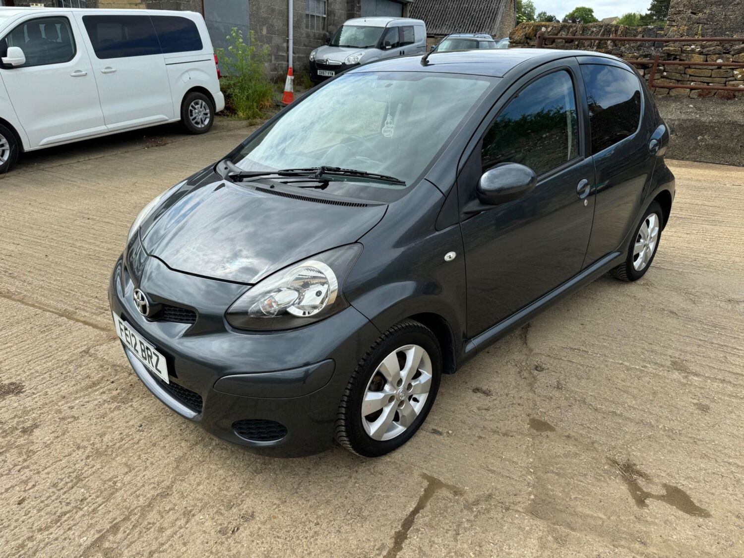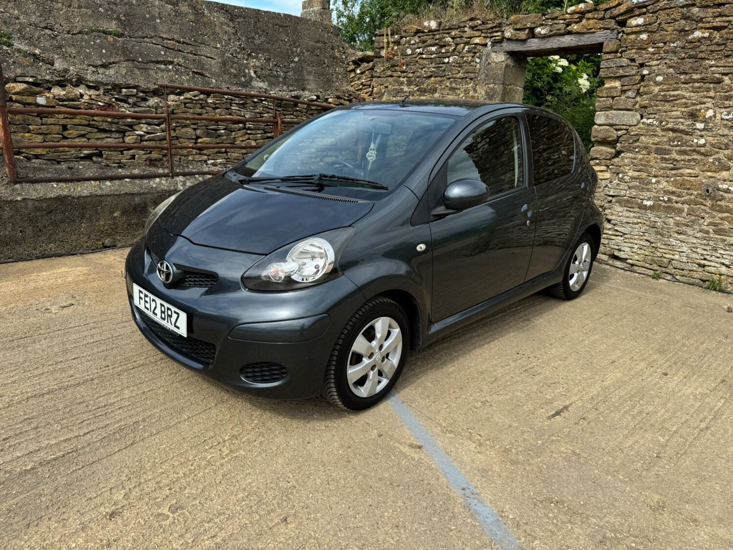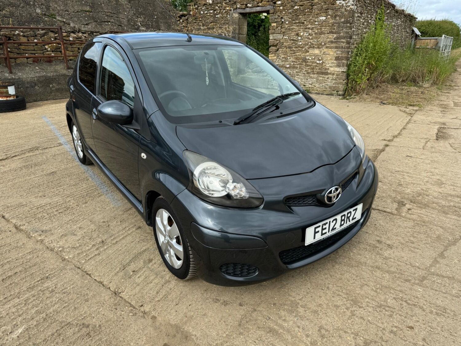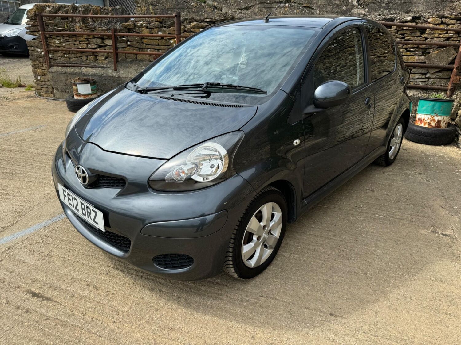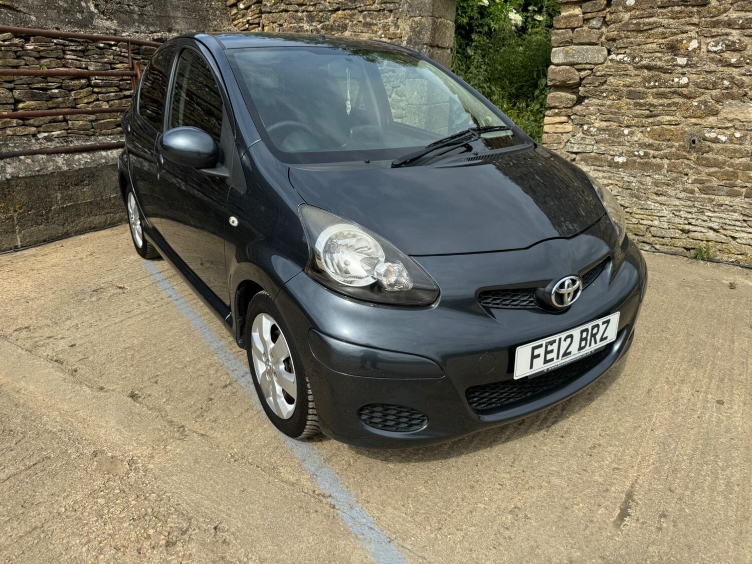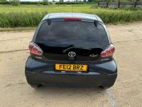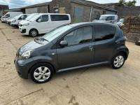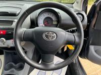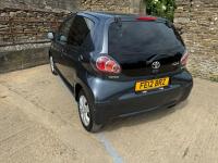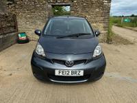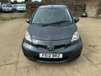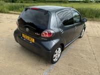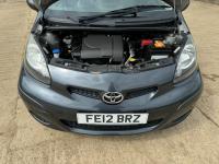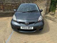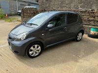 Presented in Metallic Carbon Quartz Grey with Mestizo Cloth Trim ,we have a March 2012 Toyota Aygo Go VVT-I ,fitted with a 998 cc front wheel drive petrol engine which produces 67 Bhp ,having had 4 owners from new and the last owner since march 2020 , comes with a long Mot and the following services 12/02/2013 at 10723 miles ,09/04/2013 at 20524 miles ,02/10/2013 at 30321 miles ,02/07/2014 at 30517 miles ,23/06/2015 at 33722 miles ,09/06/2016 at 36760 miles ,97/03/2018 at 48360 miles ,21/02/2019 at 55246 miles ,28/02/2020 at 61928 miles ,02/03/2021 at 69968 miles ,02/03/2022 at 84507 miles .The Aygo was originally offered with the choice of a 1.0-litre petrol engine with 69hp or a 1.4-litre turbodiesel with 55hp, the diesel arriving in 2006.Despite the diesel providing 68.9mpg economy and 109g/km CO2 emissions, it was not a big seller. Improvements to the petrol engine’s economy and emissions in 2009 rendered the diesel all but redundant in the Aygo range and Toyota dropped it to make the petrol the only engine choice. Like its sister car the Citroen C1, Toyota Aygo safety has been given a three-star rating by Euro NCAP. All Aygo models have ABS with electronic brake force distribution along with twin airbags. Side and thorax airbags became standard on all variants from July 2013. Previously, higher-spec models only added the side airbags and curtain airbags optional on Aygo+ and Sport models. Other compartments around the cabin including trays and cupholders add another 25 litres of storage while all but the most basic Aygo models have a 50/50 split rear bench which helps reach a compromise between extra luggage space and carrying passengers .Toyota again revised the Aygo at the beginning of 2012, where fuel consumption improved again for the manual car to 65.7mpg and CO2 emissions now dip below 100g/km at 99g/km. With either gearbox, the willing and rev-happy three-cylinder engine does a good job of propelling the lightweight Aygo in town and on the motorway.