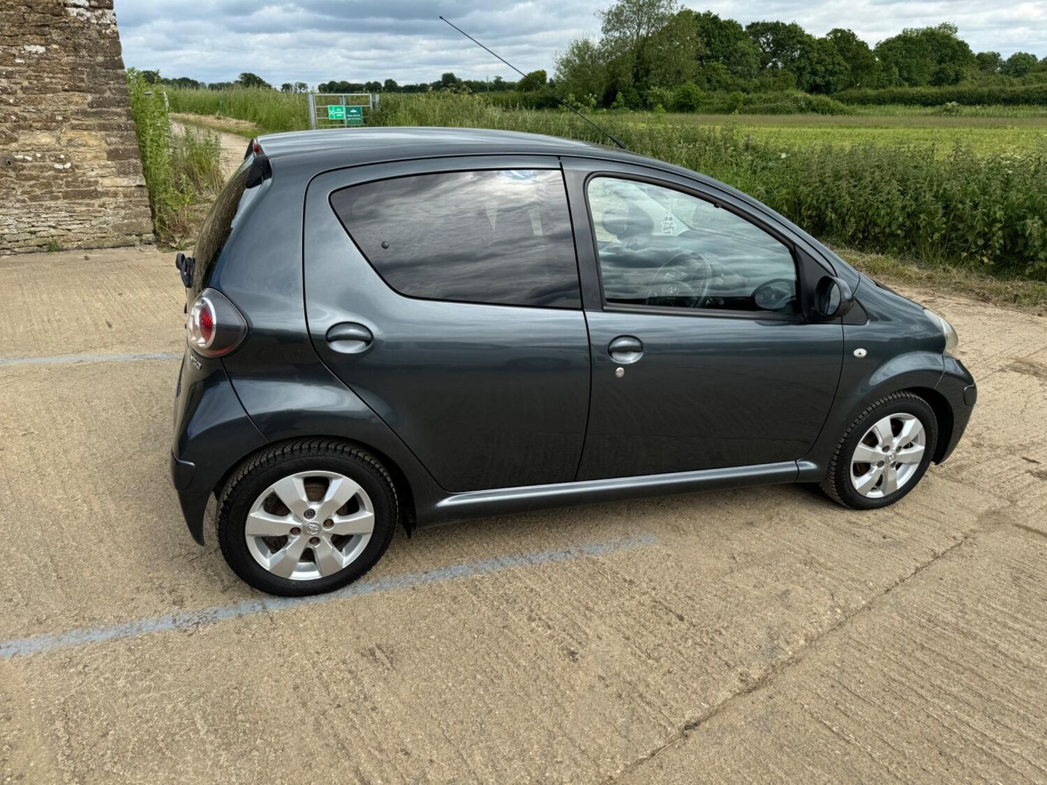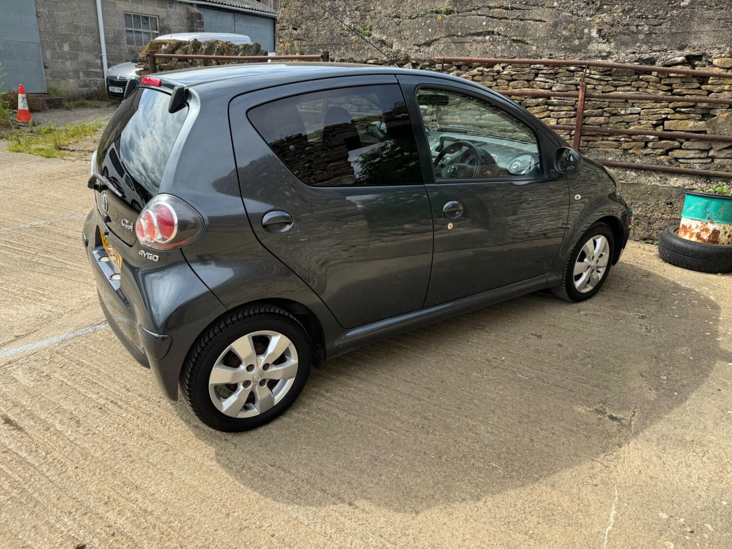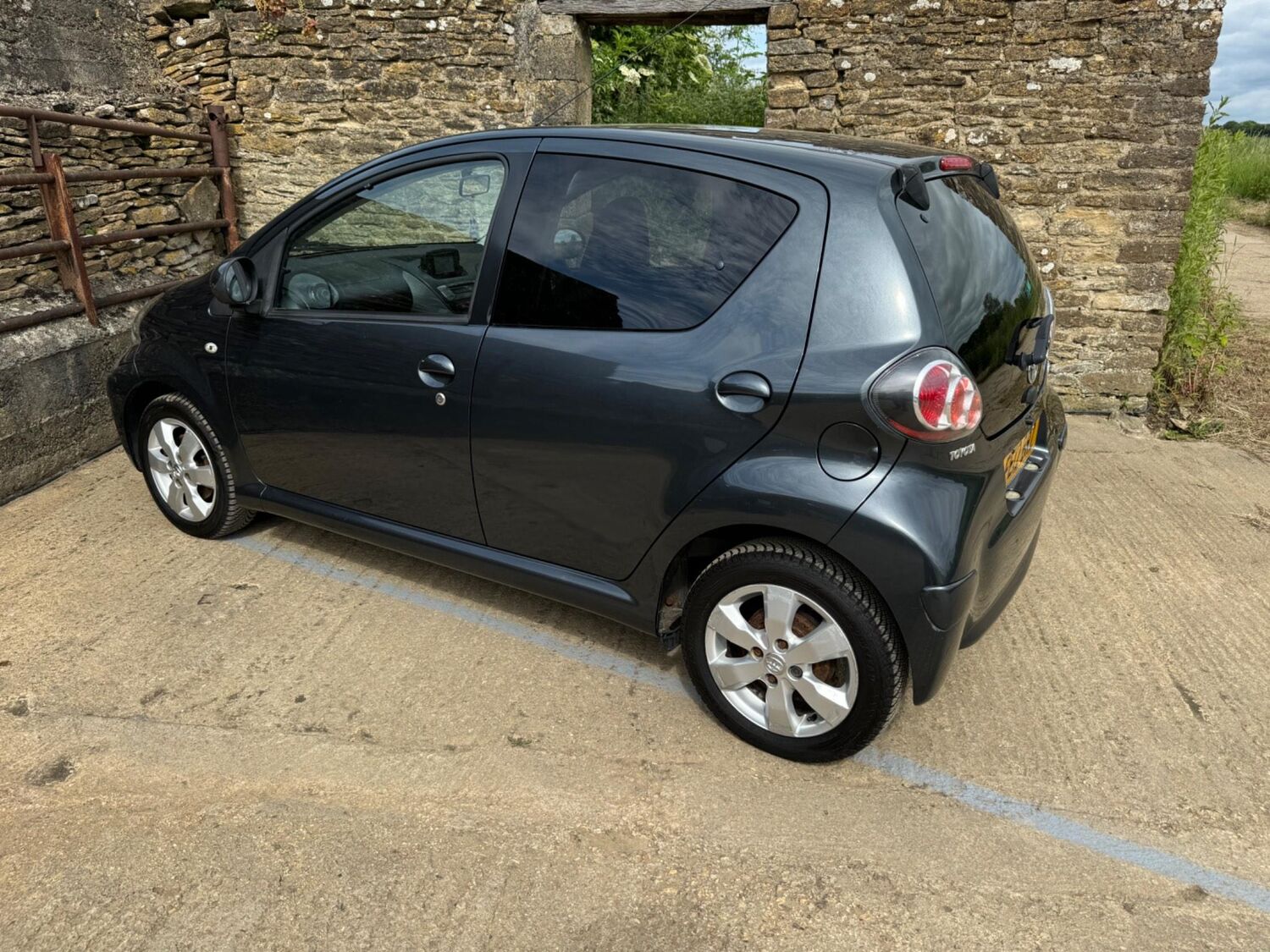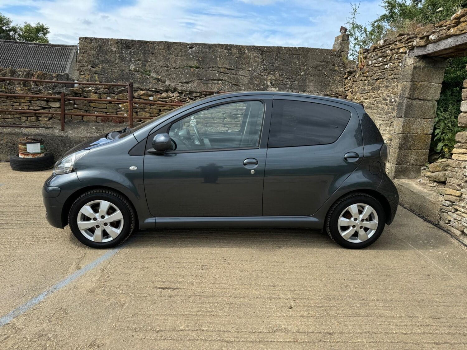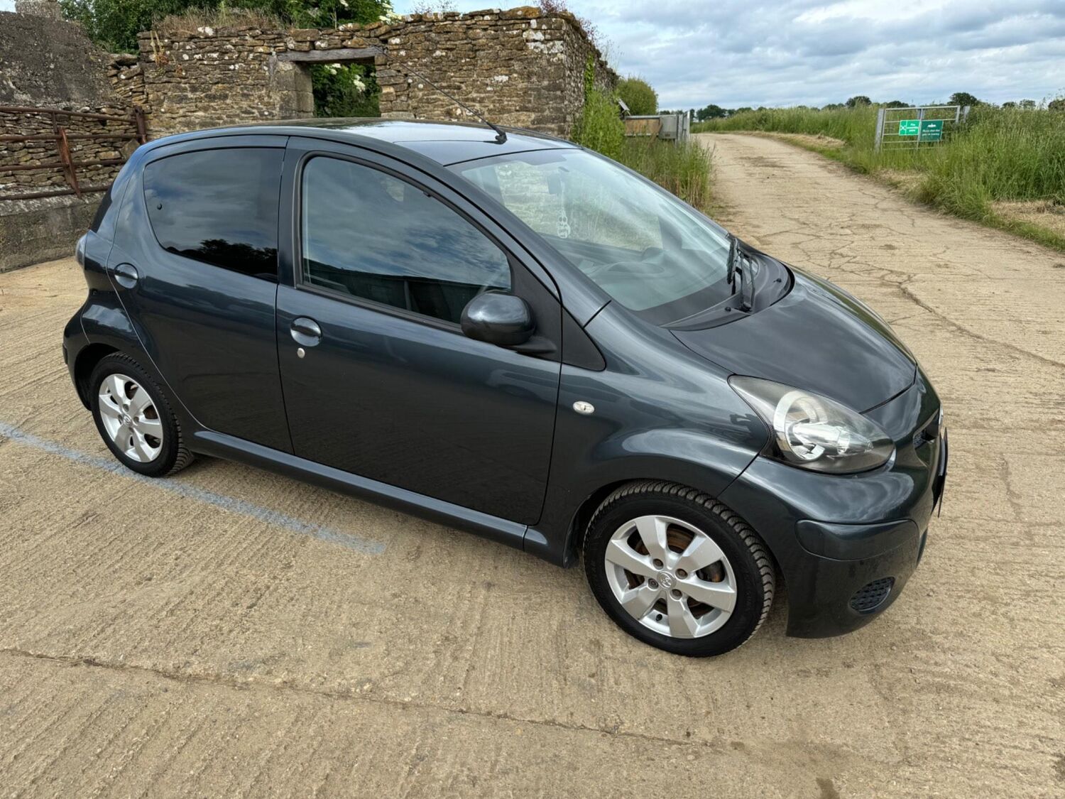Presented in Metallic Carbon Quartz Grey with Mestizo Cloth Trim ,we have a March 2012 Toyota Aygo Go VVT-I ,fitted with a 998 cc front wheel drive petrol engine which produces 67 Bhp ,having had 4 owners from new and the last owner since march 2020 , comes with a long Mot and the following services 12/02/2013 at 10723 miles ,09/04/2013 at 20524 miles ,02/10/2013 at 30321 miles ,02/07/2014 at 30517 miles ,23/06/2015 at 33722 miles ,09/06/2016 at 36760 miles ,97/03/2018 at 48360 miles ,21/02/2019 at 55246 miles ,28/02/2020 at 61928 miles ,02/03/2021 at 69968 miles ,02/03/2022 at 84507 miles .The Aygo was originally offered with the choice of a 1.0-litre petrol engine with 69hp or a 1.4-litre turbodiesel with 55hp, the diesel arriving in 2006.Despite the diesel providing 68.9mpg economy and 109g/km CO2 emissions, it was not a big seller. Improvements to the petrol engine’s economy and emissions in 2009 rendered the diesel all but redundant in the Aygo range and Toyota dropped it to make the petrol the only engine choice. Like its sister car the Citroen C1, Toyota Aygo safety has been given a three-star rating by Euro NCAP. All Aygo models have ABS with electronic brake force distribution along with twin airbags. Side and thorax airbags became standard on all variants from July 2013. Previously, higher-spec models only added the side airbags and curtain airbags optional on Aygo+ and Sport models. Other compartments around the cabin including trays and cupholders add another 25 litres of storage while all but the most basic Aygo models have a 50/50 split rear bench which helps reach a compromise between extra luggage space and carrying passengers .Toyota again revised the Aygo at the beginning of 2012, where fuel consumption improved again for the manual car to 65.7mpg and CO2 emissions now dip below 100g/km at 99g/km. With either gearbox, the willing and rev-happy three-cylinder engine does a good job of propelling the lightweight Aygo in town and on the motorway.