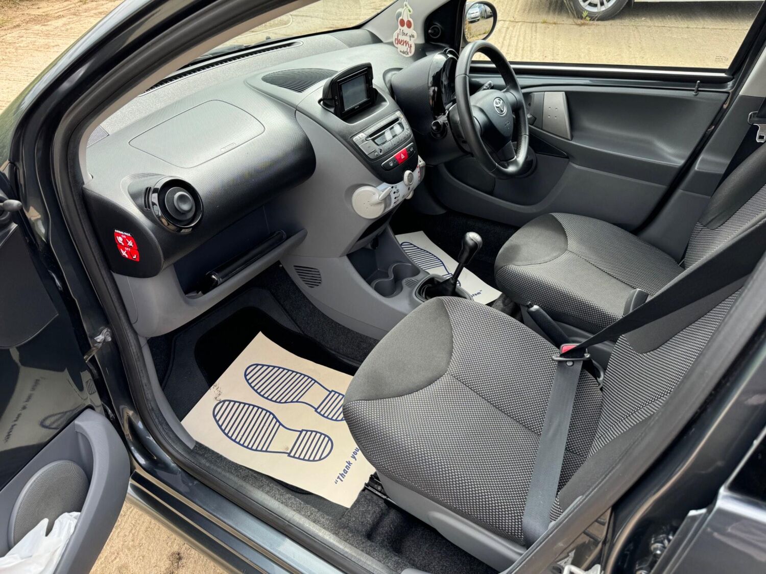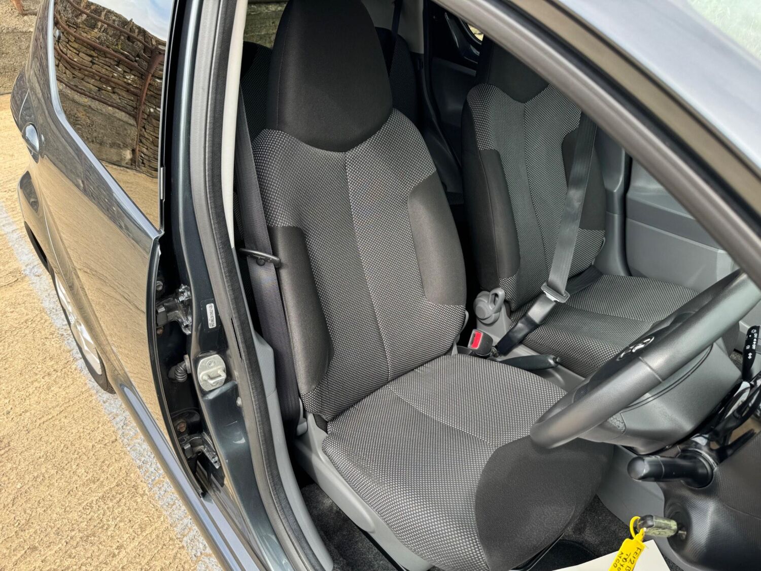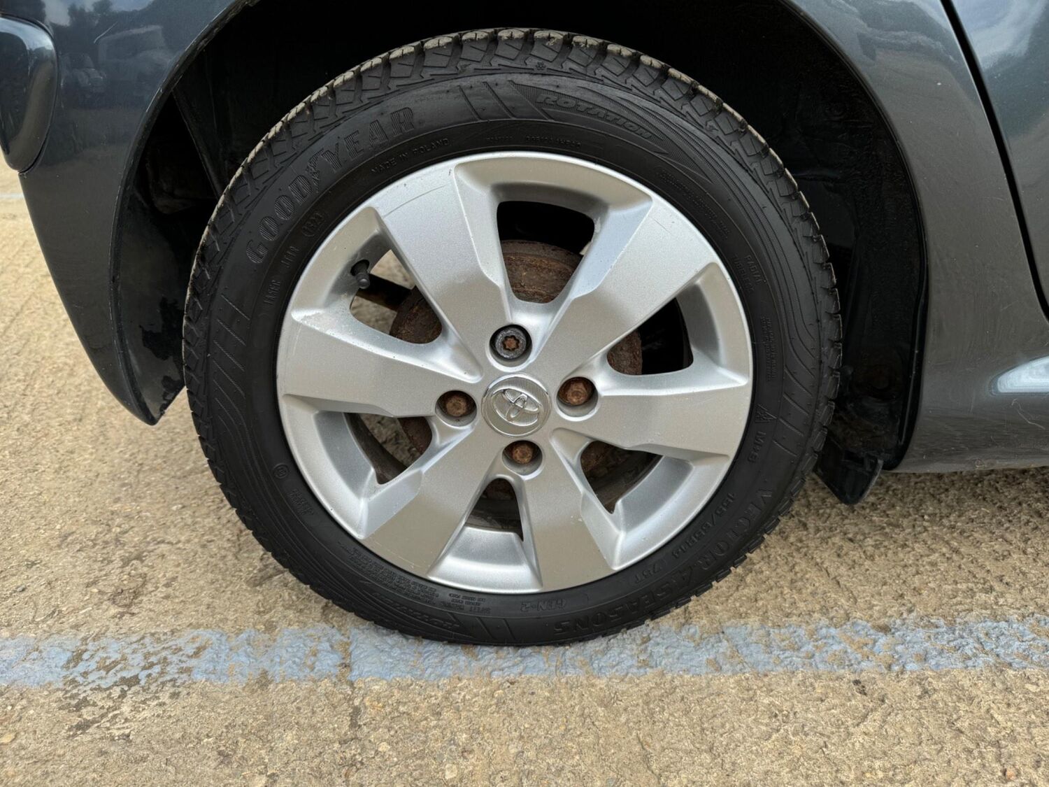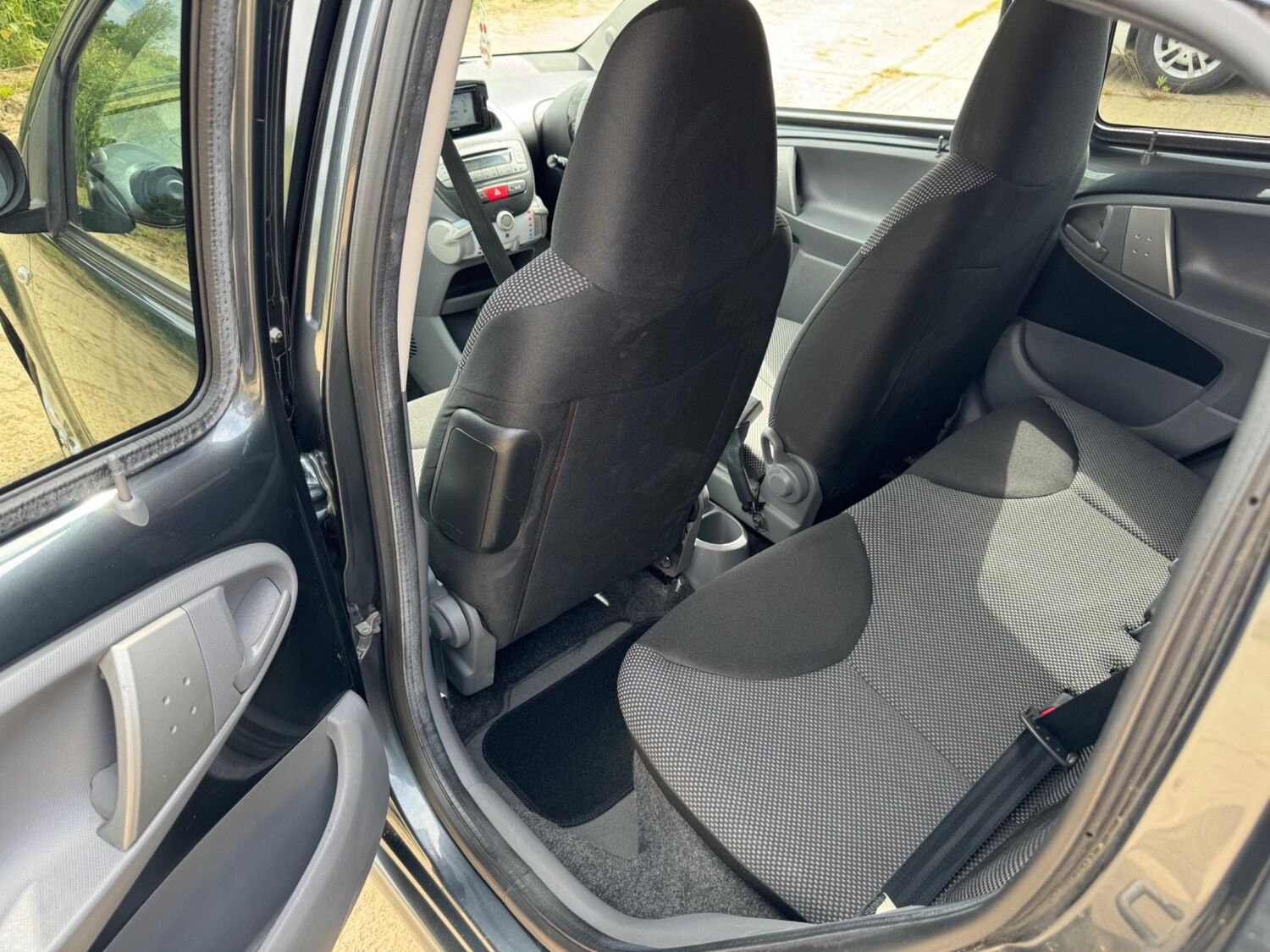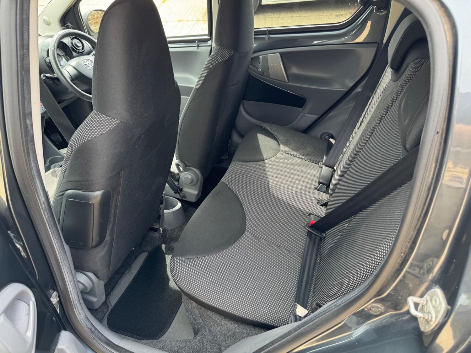 Presented in Metallic Carbon Quartz Grey with Mestizo Cloth Trim ,we have a March 2012 Toyota Aygo Go VVT-I ,fitted with a 998 cc front wheel drive petrol engine which produces 67 Bhp ,having had 4 owners from new and the last owner since march 2020 , comes with a long Mot and the following services 12/02/2013 at 10723 miles ,09/04/2013 at 20524 miles ,02/10/2013 at 30321 miles ,02/07/2014 at 30517 miles ,23/06/2015 at 33722 miles ,09/06/2016 at 36760 miles ,97/03/2018 at 48360 miles ,21/02/2019 at 55246 miles ,28/02/2020 at 61928 miles ,02/03/2021 at 69968 miles ,02/03/2022 at 84507 miles .The Aygo was originally offered with the choice of a 1.0-litre petrol engine with 69hp or a 1.4-litre turbodiesel with 55hp, the diesel arriving in 2006.Despite the diesel providing 68.9mpg economy and 109g/km CO2 emissions, it was not a big seller. Improvements to the petrol engine’s economy and emissions in 2009 rendered the diesel all but redundant in the Aygo range and Toyota dropped it to make the petrol the only engine choice. Like its sister car the Citroen C1, Toyota Aygo safety has been given a three-star rating by Euro NCAP. All Aygo models have ABS with electronic brake force distribution along with twin airbags. Side and thorax airbags became standard on all variants from July 2013. Previously, higher-spec models only added the side airbags and curtain airbags optional on Aygo+ and Sport models. Other compartments around the cabin including trays and cupholders add another 25 litres of storage while all but the most basic Aygo models have a 50/50 split rear bench which helps reach a compromise between extra luggage space and carrying passengers .Toyota again revised the Aygo at the beginning of 2012, where fuel consumption improved again for the manual car to 65.7mpg and CO2 emissions now dip below 100g/km at 99g/km. With either gearbox, the willing and rev-happy three-cylinder engine does a good job of propelling the lightweight Aygo in town and on the motorway.
