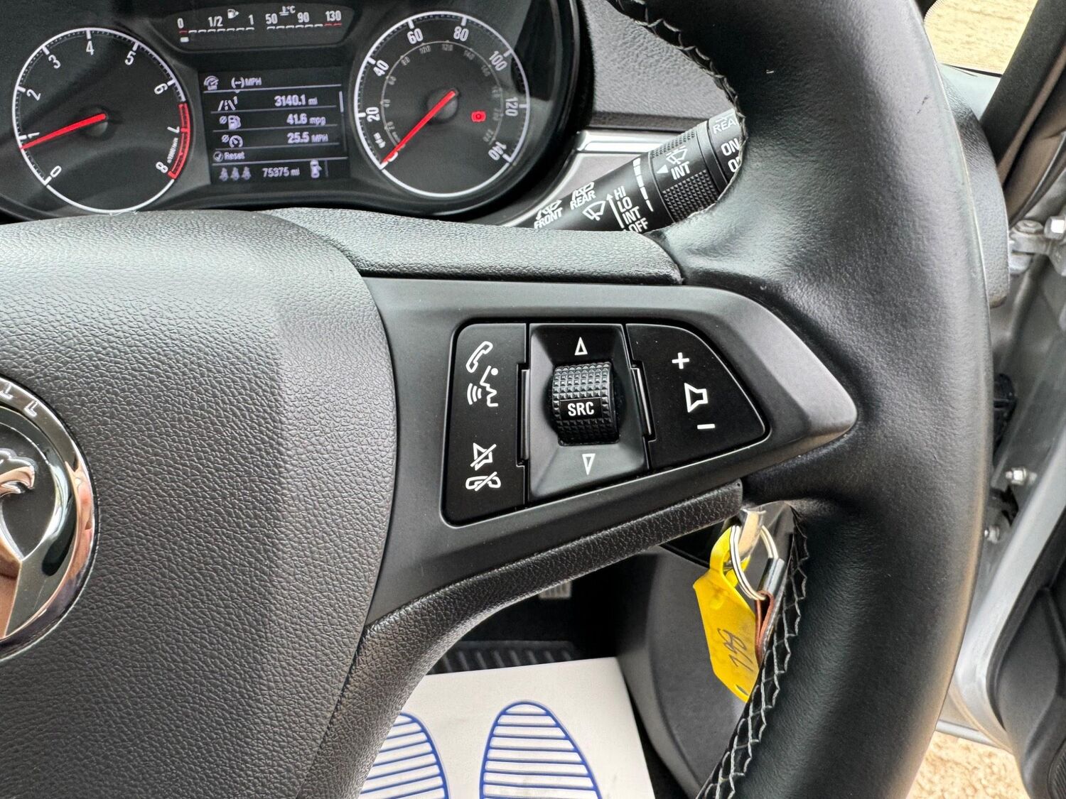 16in Alloy Wheels - Silver Style 1, 20 Watts Per Channel Output, 7in Central Colour Touch Screen, Adjustable Dashboard Illumination, Adjustable Speed Limit Audible Warning, Air Blend Heater with Four Speed Fan and Illuminated Controls, Air Conditioning, Air Recirculation System, Airbags - Passenger Deactivation, Anti-Submarining Ramps in Seats, Aux in Socket, Black Foil on B-Pillar, Bluetooth Connectivity, Body-Colour Door Handles, Brake Lights - Adaptive, CBC - Cornering Brake Control, Chrome Effect Gear Knob Trim, Chrome Effect Handbrake Button, Chrome Effect Interior Door Handles, Chrome-Style Dual Ellipsoidal Halogen Headlights, City Assist - Deleted Technical Pack if Specified, Cruise Control, DAB Digital Radio, Delay Courtesy Light Function, Display Screen - 7in Colour - High Resolution, Door and Boot Open Warning Light, Drag Torque Control, Driver and Passenger Seatbelt Force Limiters, EBD - Electronic Brakeforce Distribution, ESP Plus - Electronic Stability Programme, Electric Headlight Beam Levelling, Electrochromatic Rear View Mirror, Fog Lights - Front, Folding Key, Front Anti-Roll Bar, Front Door Side-Impact Protection Beams, Front Seatbelt Pretensioner System, Gas Pressure Dampers, Glovebox - Illuminated, Head Restraint - Height Adjustable Outer Rear Seat, Headlights - Automatic On, Height-Adjustable Front Seat Head Restraints, Illuminated Luggage Area, Instrument Panel Light Dimmer, IntelliLink - Touch Screen Infotainment System, Intellilink, Interior Courtesy Light Operated By Door Switches, Intermittent Rear Window Wipers with Washer, Internet-Internet Radio and Navigation Via Smartphone Screen Scraping, Load Restraint Lashing Eyes, Map Reading Lights, Music Streaming via Bluetooth, Music-Video Playback From USB or AUX-In, One-Piece Folding Rear Seat, Pedal Release System, Pollen Filter, RDS with Traffic Programme, Radio - AM-FM with 36 Station Presets, Reading Lights - Rear, Rear Parcel Shelf, Reclining Front Seats, Reinforced Passenger Safety Cell, Rhutenium Facia with Chrome-Effect Inserts, Seatbelt Unfastened Audible Warning For All Seats, Seats - Heated Front, Side Window Demist Vents and Four Adjustable Heating and Ventilation Outputs, Sight and Light Pack, Sight and Light Pack II, Speakers - x6, Straight Line Stability Control, Sunvisors - Driver and Passenger with Vanity Mirrors, TMC - Traffic Message Channel, TPMS - Tyre Pressure Monitoring System, Thatcham Approved Immobiliser, Tinted Glass, Traction Control, USB Connection with iPod Control, Welcome Lighting, Winter Pack, Bluetooth system Cruise control + speed limiter Door/boot open warning light, Exterior temperature gauge IntelliLink infotainment system Lights on warning Low fuel level warning light, Rev counter Service indicator Speed sensitive power steering Speed warning indicator Trip computer, 6 speakers Aux input Fingertip controls for audio system USB connection, Body colour bumpers Body colour door handles Electric adjustable door mirrors Electric front windows/one touch facility, Front fog lights Heated door mirrors Heated windscreen Laminated windscreen, LED daytime running lights Rear wiper Tinted glass including windscreen, 12V power outlet 2 height adjustable rear headrests Adjustable dashboard illumination Air recirculation system, Centre console with cupholders Chrome gear knob Cloth upholstery Delay courtesy light function, Driver/passenger reading lights Driver/passenger sunvisors and vanity mirrors Front seat belt pre-tensioners with load limiters Grab handles, Height adjustable driver's seat Height adjustable front headrests Height/reach adjust steering wheel Illuminated glovebox, Interior courtesy light operated by all doors ISOFIX on outer rear seats Lidded front door storage with drinks holder + armrest Load restraining lash, Luggage compartment cover Pollen filter Rear bottle holder Rear door pockets, Rear parcel shelf Reclining front seats Seatback map pocket, Winter pack - Corsa Passive Safety ABS + EBD + EBA Brake assist function Child proof door locks, Driver/passenger 2 stage auto adaptive airbags ESP + traction control Front and rear curtain airbags Front and rear seatbelt reminder, Front seat side impact airbags Height adjustable front seatbelts Hill start assist Passenger airbag deactivation system, Three 3 point rear seatbelts Tyre pressure monitoring system, Anti-drill door locks Deadlocks Immobiliser Radio frequency remote central locking, Chrome effect speaker surrounds Rhutenium facia with chrome effect inserts Wheels 16" Silver alloy wheels - Style 1