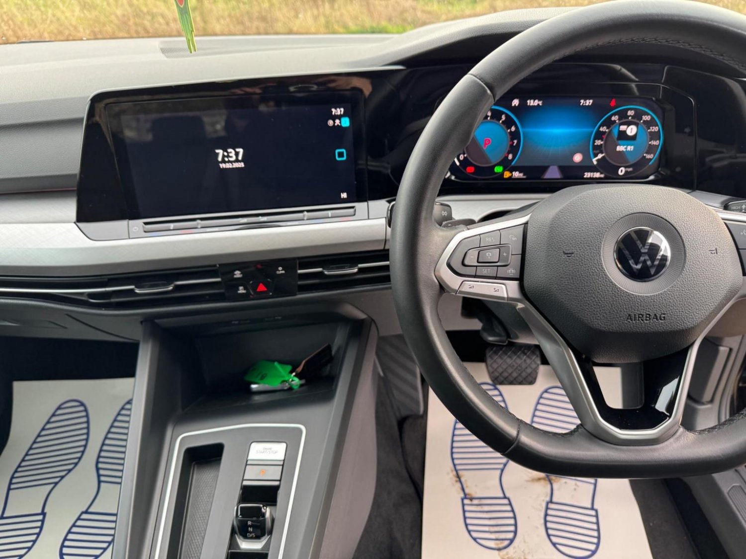 Presented in Stunning Volkswagen Deep Black we have a One Owner March 2022 Volkswagen Golf 1.0 eTSI MHEV Life DSG Euro 6 (s/s) 5dr ,fitted with a 999 cc 3 cylinder petrol engine which produces 110 BHP ,The Volkswagen Golf eTSI is a mild-hybrid version of the Golf that combines a petrol engine with an electric motor. The eTSI is designed to improve fuel efficiency and reduce emissions. The eTSI uses a 48 V lithium-ion battery and a 48 V belt starter generator ,It has a 7-speed dual-clutch Gearbox (DSG) The eTSI has an electric boost function for acceleration ,It has a brake energy recuperation function .This Car comes with two cars long Mot and the following services 23/08/2023 at 8960 ,01/05/2024 at 16344 miles ,14/02/2025 at 23136 miles .The eTSI improves drivability, especially in stop-and-go traffic It has smoother and more comfortable engine restarts It has low consumption and emission values .The eTSI is not capable of running solely on electric power. 48 V plus 12 V. The new 48 V system helps to save fuel. In fact, consumption is reduced by up to 0.4 l/100 km. The 48 V technology permits transmission of higher electric power levels with comparatively small conductor cross-sections and a compact battery, and thus also with low additional weight. That leads to recuperation of significantly more energy during braking and deceleration. The energy stored in the 48 V lithium-ion battery supplies the 12 V vehicle electrical system and drives a 48 V belt-driven starter-alternator. This belt-driven starter-alternator takes on the role of the alternator and starter while simultaneously operating as a small, lightweight electric motor that instantly boosts the drive torque when moving off. The output of the generator is transferred by the belt drive. It also starts the combustion engine – which is switched off as much as possible while the vehicle is moving – in a barely perceptible way. In this case, the 48 V battery supplies energy to all the important systems of the Golf eTSI. Overall, the 48 V mild hybrid drive combines low consumption and emission values .
