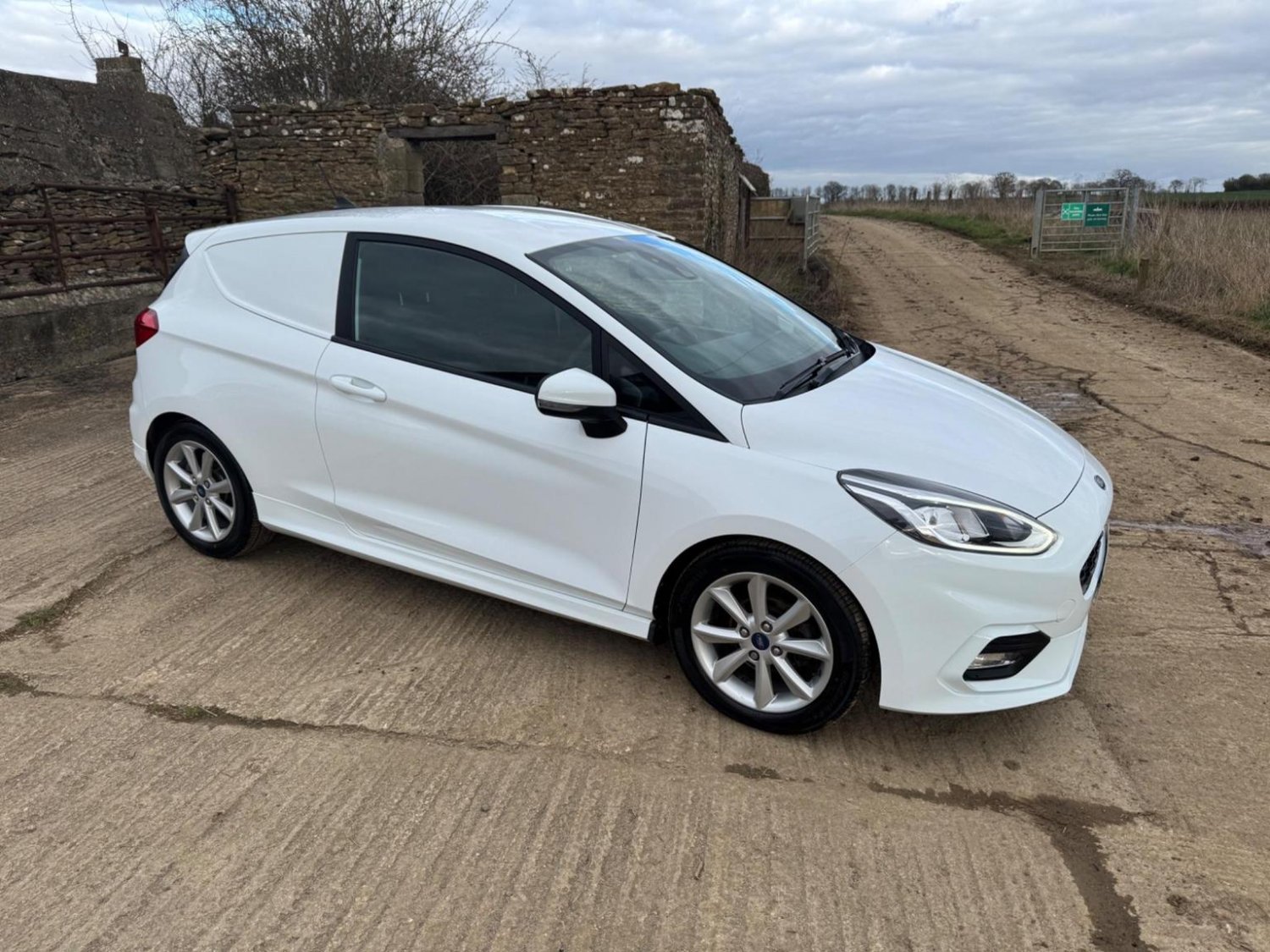 Presented in Stunning Ford Frozen White we have a lovely Spec June 2019 Euro 6 Ford Fiesta Van 1.5 TDCi Sport Euro 6 (s/s) 3dr,having come direct from ALD Automotive Ltd ,this Sport van comes with High Stanard Spec ,fitted with a 1499 cc front wheel drive diesel engine which produces 120 BHP , and returns 67 MPG Combined , comes with a long Mot and recent oil change service and the following services 13/03/2020 at 10960 miles ,16/04/2021 at 17807 miles , 27/05/2022 at 28763 miles ,08/08/2023 at 39606 miles and 28/05/2024 at 45250 miles .
