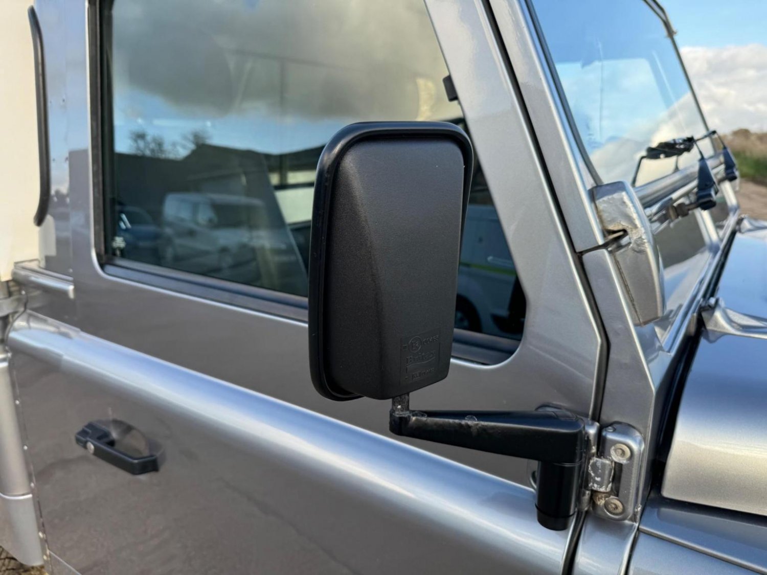 Height inclusive of roof rails No details available ,Length 4773 mm ,Wheelbase 2794 mm ,Width 1790 mm ,Width including mirrors No details available ,Fuel tank capacity 75.00 litres ,Minimum kerb weight 1938 kg ,Interior features Exterior features ,Cupholders x2 16in Steel Wheels - Michelin Latitude Cross Tubeless Tyre ,Headlights - Halogen Projector Full Size Spare Wheel ,Power Assisted Steering Rear Mudflaps ,Seat Map Pockets Tailgate - Lower ,Single Passenger Seat Windows - Tinted Front and Side ,ABS - Anti Lock Braking System ,Alarm System - Perimetric and Volumetric with Immobiliser and Battery Back Up Sounder 433mhz ,DSC - Dynamic Stability Control ,ETC - Electronic Traction Control.Production of the model now known as the Defender began in 1983 as the Land Rover One Ten, a name which reflected the 110-inch (2,800 mm) length of the wheelbase. The Land Rover Ninety, with 92.9-inch (2,360 mm) wheelbase, and Land Rover 127, with 127-inch (3,226 mm) wheelbase, soon followed.Ten, and in 1984 joined by the Land Rover Ninety, plus the new, extra-length Land Rover One Two Seven in 1985) is a series of British off-road cars and pickup trucks. They consistently have four-wheel drive, and were developed in the 1980s from the original Land Rover series which was launched at the Amsterdam Motor Show in April 1948. Following the 1989 introduction of the Land Rover Discovery,