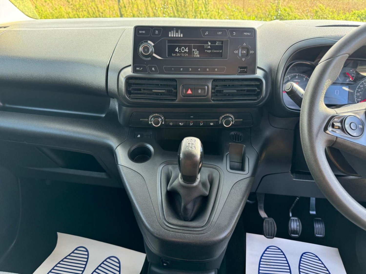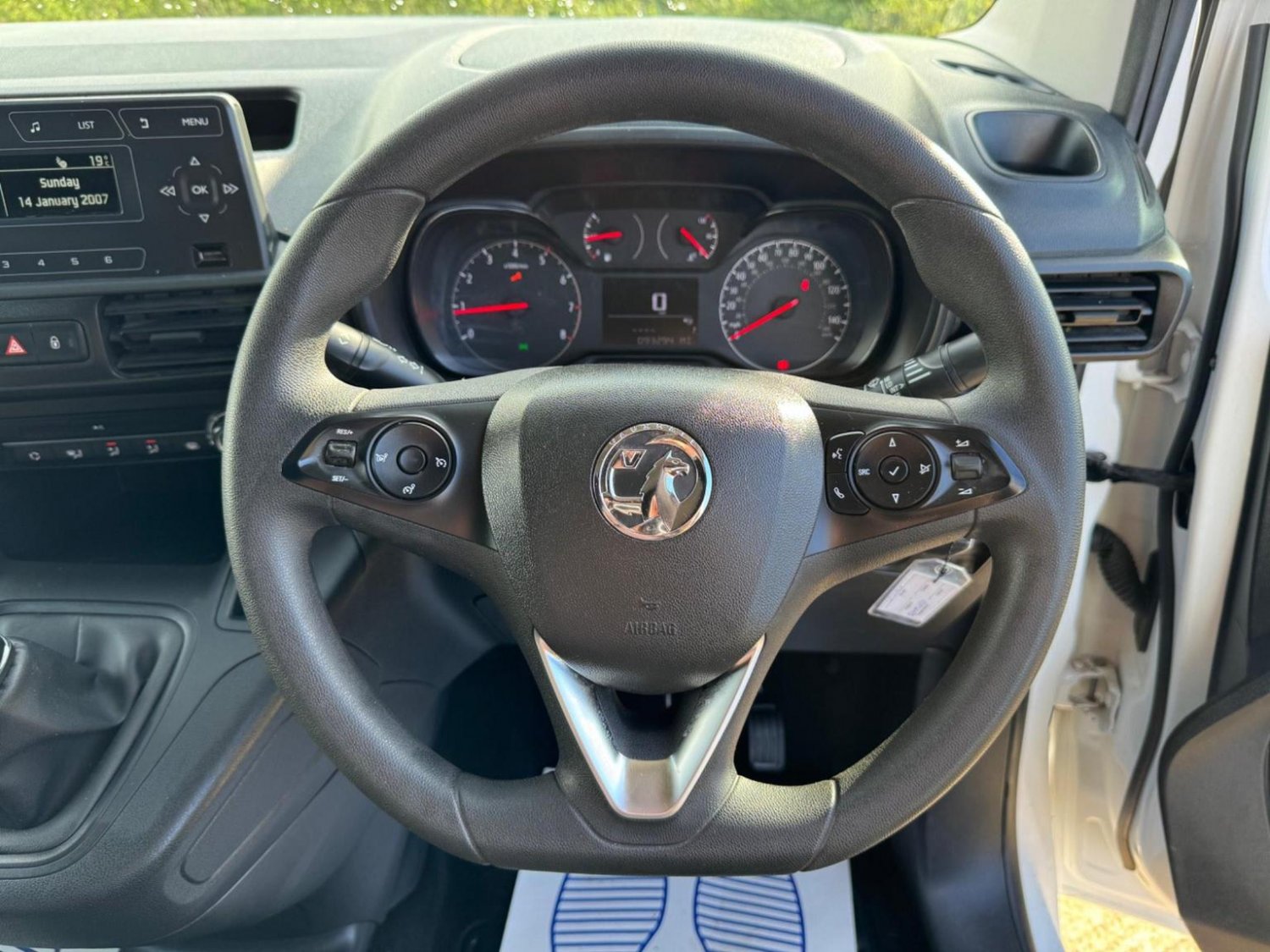 20 Watts Per Channel Output, Air Conditioning, Anti-Submarining Ramps in Front Seats, Bluetooth A2DP Audio Streaming, Bluetooth Connectivity, Bulkhead - Full Height Steel, Bumpers - Body Colour Front and Rear, CSC - Corner Stability Control, DAB Digital Radio, Deactivation Switch for Front Passengers Airbag, Deformation Zones Front and Rear, Dipping Rear-View Mirror, Drivers and Front Passengers Lap Belt Pretensioner System, Drivers and Front Passengers Sunvisors, EBD - Electronic Brakeforce Distribution, ESP - Electronic Stability Programme, Electronic Cruise Control, Energy Absorbing Steering Column, Engine Drag Torque Control, Fixed Floor-Mounted Load Restraint Lashing Eyes x6, Floor Mounted Handbrake Lever, Four Adjustable Facia Vents, Front Body Lock Seatbelt Pretensioner System, Front Seatbelt Force Limiters, Height Adjustable Front Inertia-Reel Lap and Diagonal Seatbelts, Illuminated Controls, Illuminated Load Area, Nearside Sliding Side Access Door - Unglazed, Parking Sensors - Rear, RDS with Traffic Programme, Reinforced Passenger Safety Cell, Remote Control Security Alarm System, Side Impact Protection Beams, Side Protection Mouldings, Side Window Demist Vents, Six-Speed Fan, Speakers - x4, Stereo Radio - AM-FM, Tinted Windows, Traction Control, Twin Electrically Adjustable - Heated Door Mirrors, Twin Solid Rear Doors - Unglazed, Two Speed Windscreen Wipers with Variable Intermittent Wipe, USB Charging - Infotainment Points - Infotainment Unit and Rear of Centre Console, USB Charging Point in Glovebox, USB Connection with iPod Control, Vanity Mirror on Rear of Drivers Sunvisor, Vauxhall Connect, Windscreen Demist Vents, Central facia display with audio information, digital clock, outside temperature with ice warning and additional features about infotainment system, Centrally located instrument cluster with service due indicator and trip computer data Instrumentation Speedometer, rev counter, fuel gauge with low fuel, Multi-function trip computer with trip mileage, vehicle range, average speed, average and instantaneous fuel economy Speed sensitive electric power assis, Vauxhall connect Entertainment Steering wheel mounted audio controls USB charging point in glovebox USB charging point in rear centre console, Automatic lighting control Body colour front and rear bumpers Daytime running lights, Electrically operated front windows with safety autoreverse one touch facility Side protection mouldings Solar heat absorbing windscreen, Tinted windows Two speed windscreen wipers with variable intermittent wipe, 12 volt electrical accessory socket centre console 6 way adjustable drivers seats and 4 way adjustable front passengers seats with lumbar adjustment, Anti-submarining ramps in front seats Cab heating system with six speed fan, Illuminated controls, four adjustable facia vents, windscreen demist vents a, windscreen demist vents and side window demist vents Carpet floor covering Curitiba fabric seat trim upholstery, Driver's top lidded glovebox Front passenger sunvisor Full width overhead storage shelf with ambient lighting Large open storage pocket behind infota, Open storage compartment below glovebox Reach and rake adjustable steering column Six Fixed floor mounted load restraint lashing eyes Small open stor, Small open storage compartment behind gear lever Sun visor and vanity mirror for driver side Two drinks holders in centre console on front compartment, Two facia mounted drinks holders on front compartment Two large and two small open door pockets, Deactivation switch for front passenger airbag and side impact airbag Drivers and front passengers lap belt pretensioner system, Energy absorbing steering column, Side impact protection beams, Reinforced passenger safety cell and front and rear deformation zones Front body lock dia, Height adjustable lap and diagonal inertia reel front seatbelts Security 2 folding keys with integral remote control function Electronically protected, Locking wheel bolts Remote central locking and deadlocks Ultrasonic alarm includes UTR, Vauxhall engine deadlock immobiliser system Visible Vehicle Identification Number (VIN), Anti-lock braking Anti-roll bar Corner stability control Electronic brake force distribution, Electronic stability programme Emergency brake assist Engine drag torque control Hill start assist, Independent MacPherson front suspension with gas pressure dampers and linear-rate coil springs Torison beam rear suspension with gas pressure dampers and